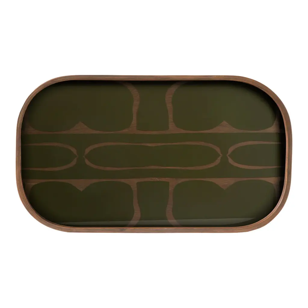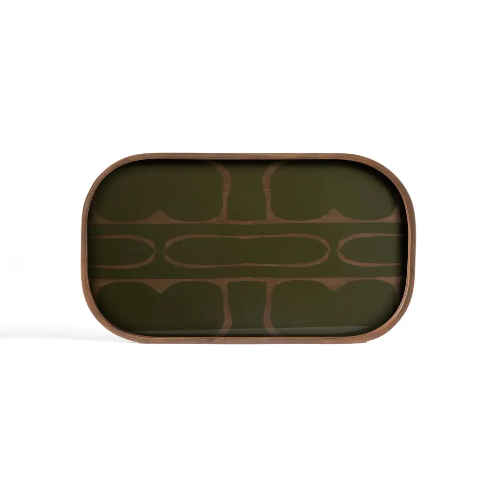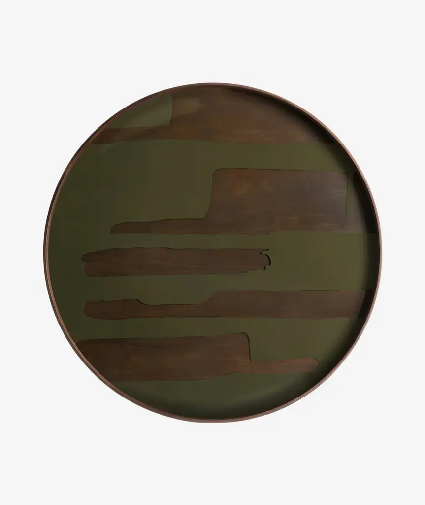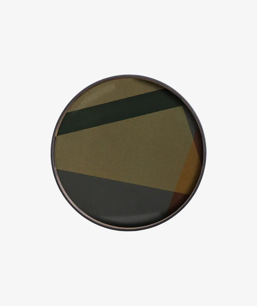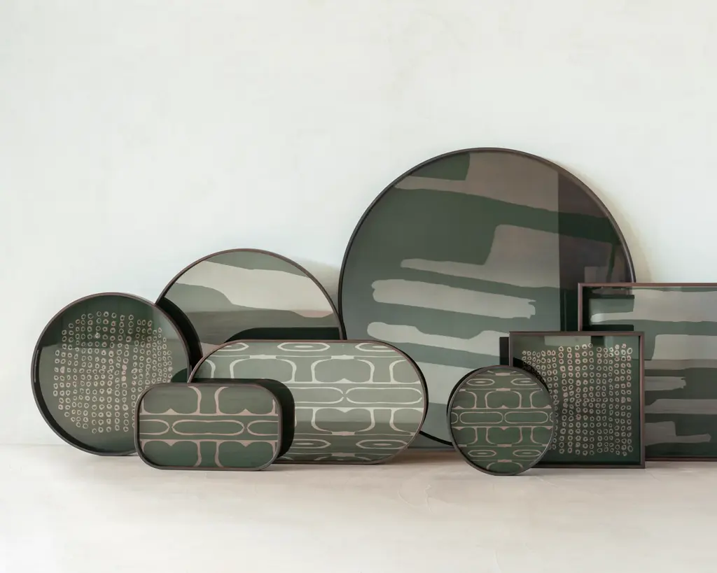 The Second Nature tray collection is inspired by the organic shapes and abstract shadows of nature; stacked rocks, the bark of a tree, the markings on a turtle’s shell. A harmonious blend of organic inspiration and contemporary design, Second Nature perfectly layers hand-printed glass over the warmth of wood. The artistry of the moss green and metallic ink palette brings a quiet sophistication to its surroundings.