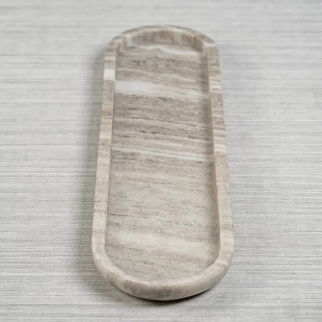 A striking centerpiece designed for modern elegance. Crafted from premium marble, its elongated form and oval shape make it a captivating addition to any space. Versatile and visually appealing, this tray serves as a functional and decorative piece, perfect for showcasing fruits or decorative pieces.
