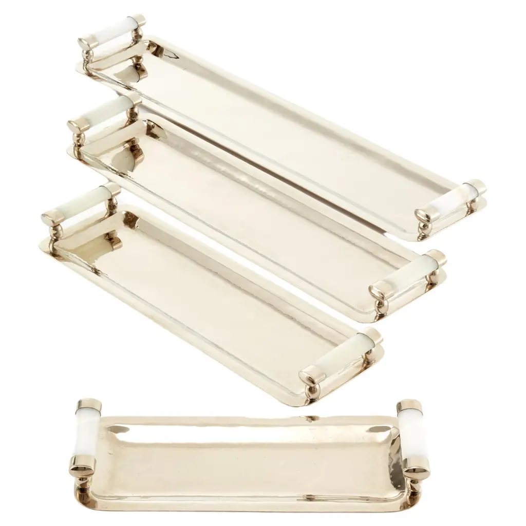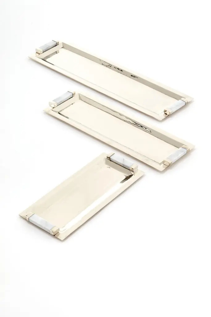 Set Capa Small, Medium & Large Narrow Trays, Alpaca Silver & Grey Marble