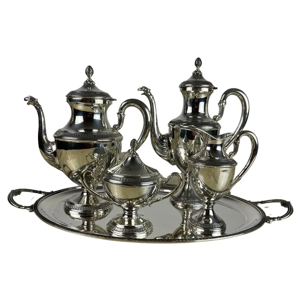 Set Chubut Champagne Bucket, Tray, Pitcher, Alpaca Silver & Black Horn