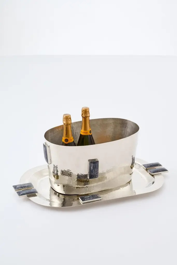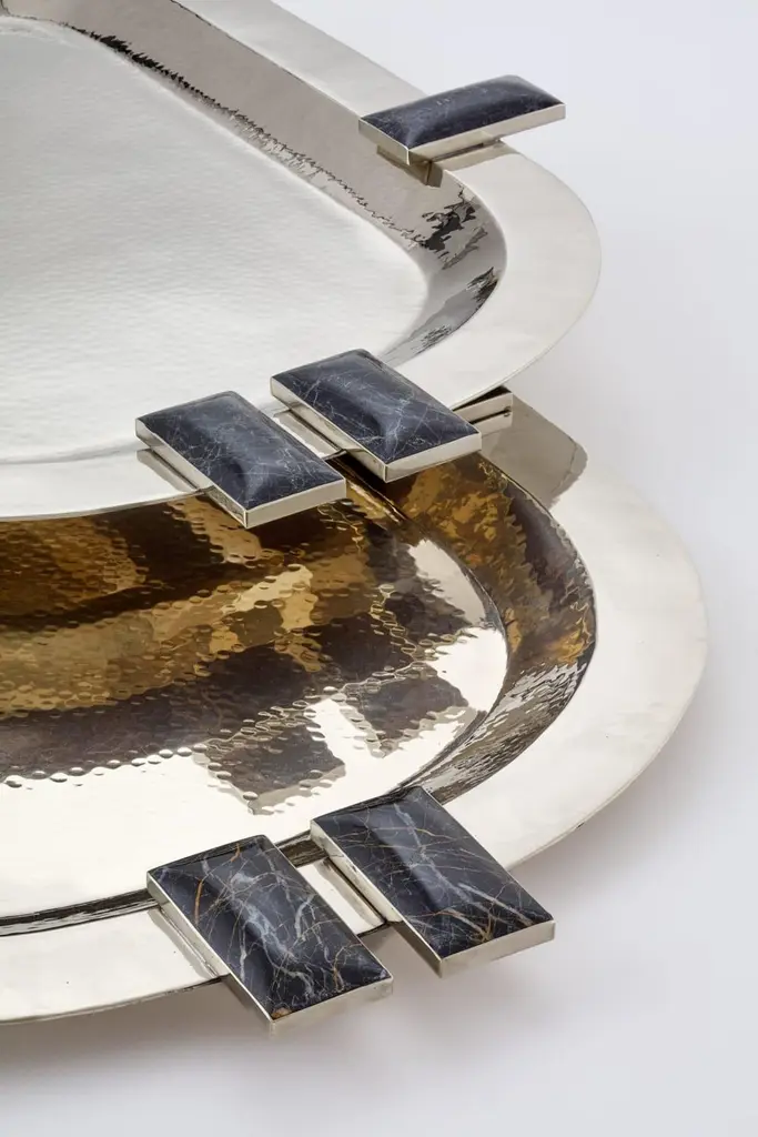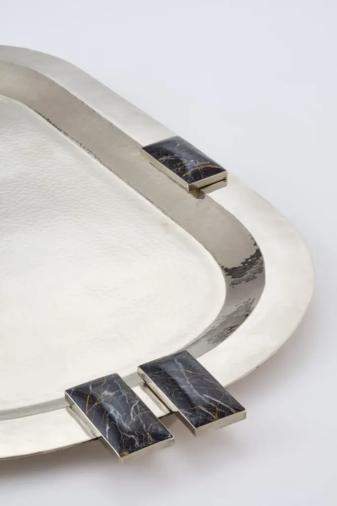 Set Glaciar Silver Alpaca, Black Onyx Stone Medium & Large Bar Tray