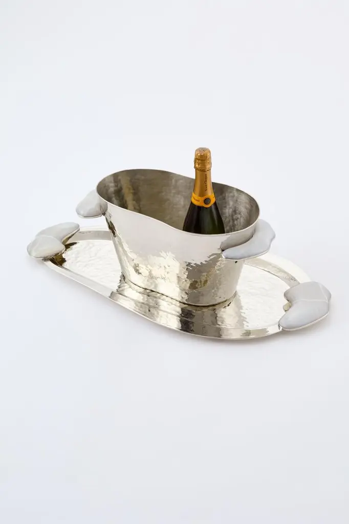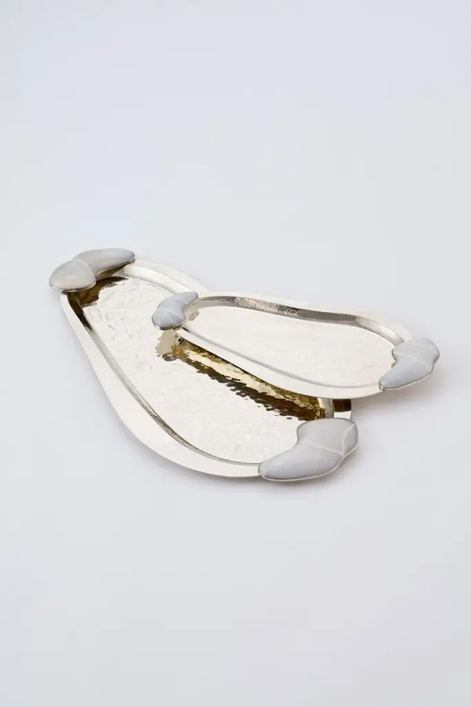 Dimensions : N°1: 45 × 21 cm (17.7 × 8.3 in) N°2: 61 × 31 cm (24 × 12.2 in)In the vast beauty of Argentine Patagonia, Lake Lácar inspires calm and elegance.Its gentle shoreline takes shape in the curves of this tray: cool, luminous onyx reflecting the still waters, embraced by hand-hammered metal like the mountains that guard the lake