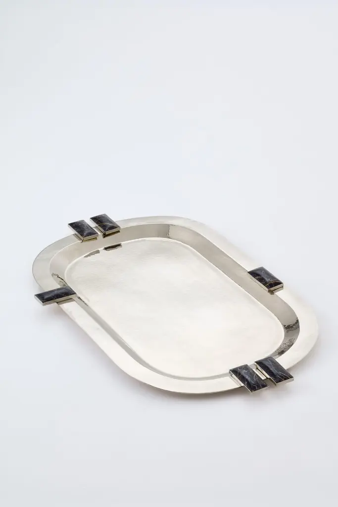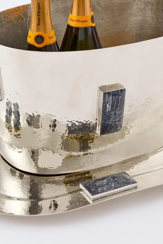 Dimensions :Tray : 70 cm x 45 cm // 27.5" x 17.7" Champagne bucket 51 cm x 25 cm x 23 cm // 20" x 9.8" x 9"Glaciar collection is meticulously handcrafted by our local artisans with these rectangular onyx pieces set around alpaca silver flower vases, boxes and trays.Our pieces are made by hand. One of a kind.All natural stones may vary in color.