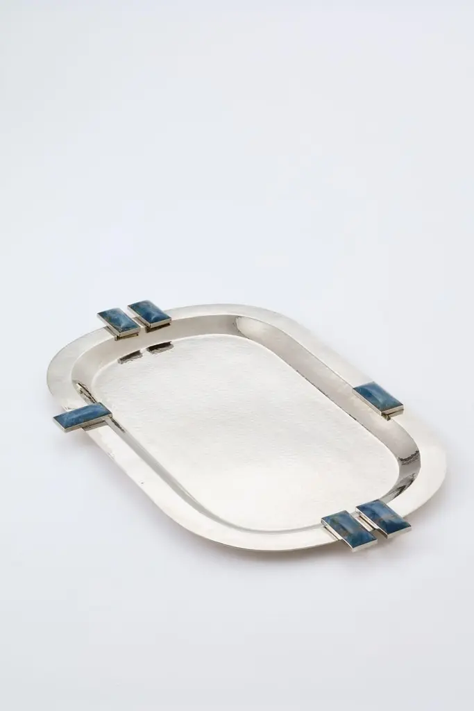 Dimensions :Tray : 70 cm x 45 cm // 27.5" x 17.7" Champagne bucket 51 cm x 25 cm x 23 cm // 20" x 9.8" x 9"Glaciar collection is meticulously handcrafted by our local artisans with these rectangular onyx pieces set around alpaca silver flower vases, boxes and trays.Our pieces are made by hand. One of a kind.All natural stones may vary in color.