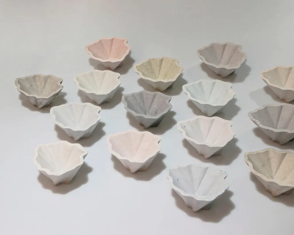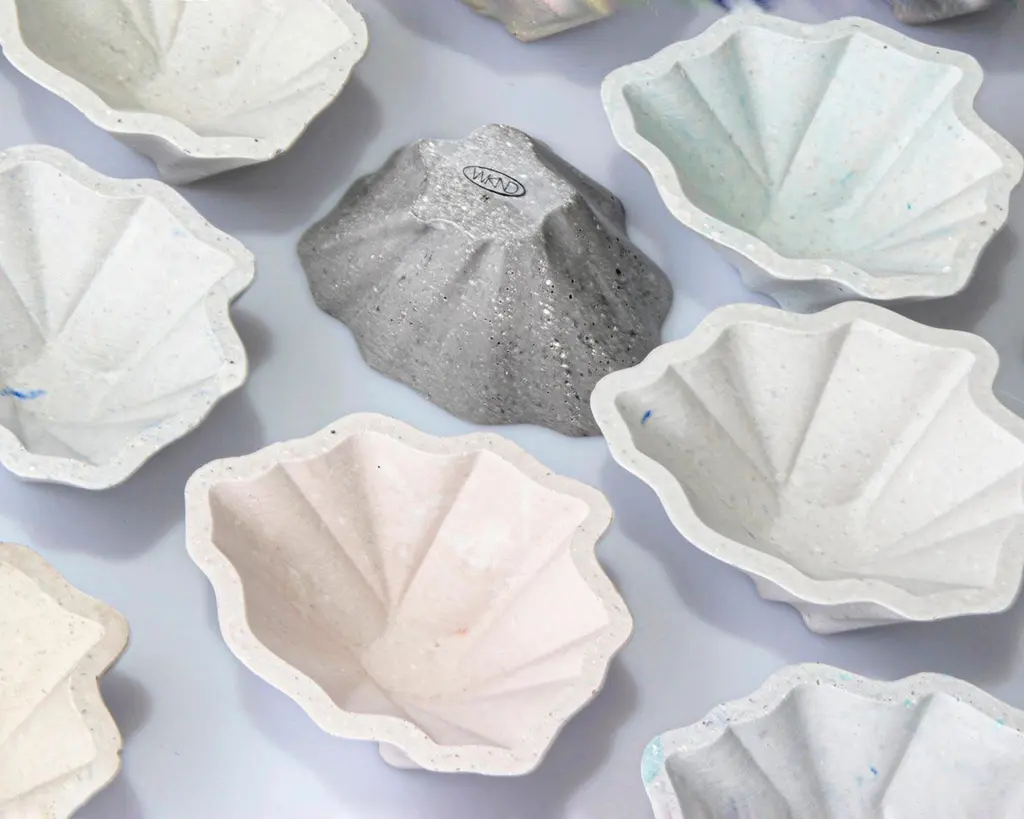 This series is made using eggshells discarded from an ice cream shop and shells from Tong-yeong, Korea. There is an ice cream shop that makes gelato next to The WKND Lab’s workspace. They make ice cream based on eggs, not milk. In the process, 300 eggs are consumed every week and many shells are thrown away. Since then, based on the fact that CaCO3 is what mostly constitutes an eggshell, we got interested in oyster shells, which have the same composition- and decided to plan this Oygg series using eggshells and oyster shells. Because it is handmade, all products have diferent colors and patterns. The eggshell has a pink/orange color and the shell has a subtle grayish blue color, so if you use these to create texture, each piece will have a diferent shape and color.WKND Lab specializes in various design disciplines, including material research, object design, furniture design, and art installation. With a focus on material-driven narratives, WKND Lab communicates its philosophy about the dynamic interplay between design, humanity, and the natural environment. From Oygg SeriesMaterial : Oyster Shells, JesmoniteOverall size: 28 W x 11.2 D x 5.7 H (cm)Individual Dimensions: 14 W x 11.2 D x 5.7 H (cm)Weight: avg. 580gProduction time is 5 weeks.Every piece is hand-made, color and measurement may slightly varyOygg series tray is made with upcycled oyster shells collected from Tongyeong, Korea. by Wknd LabColor options: Light Gray, Gray, Light Blue, Blue, Light Coral, Deep Coral, Random.