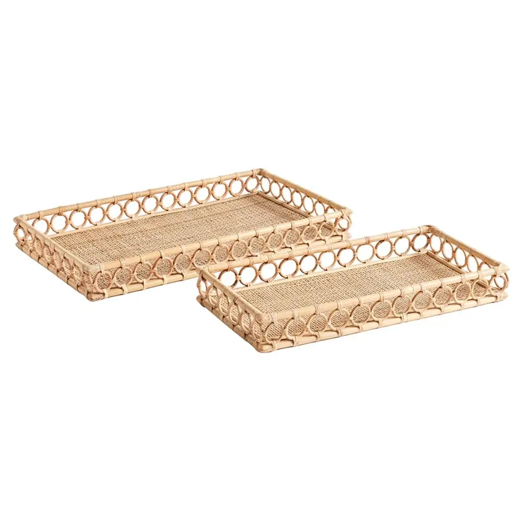 Set Of 3 Rattan Square Tray