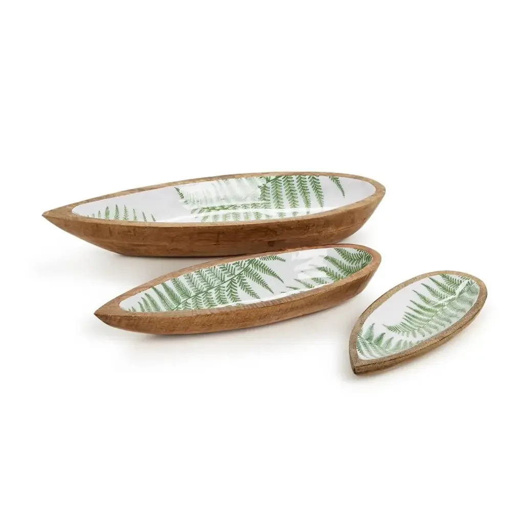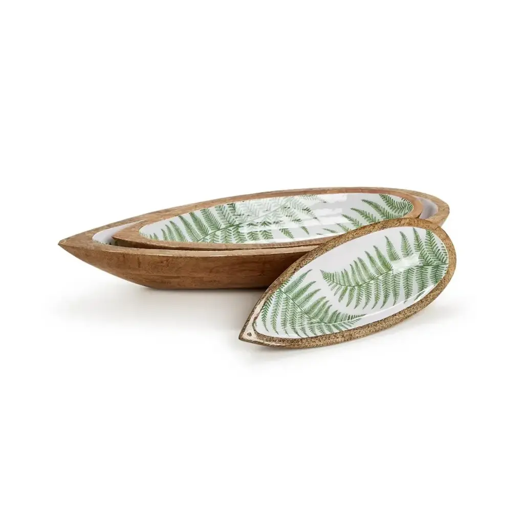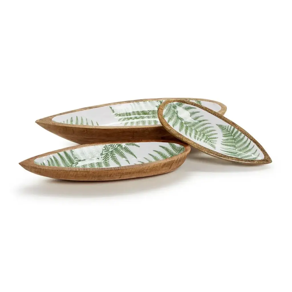Set Of Three Fern Tear Drop Hand-Crafted Wood Tray