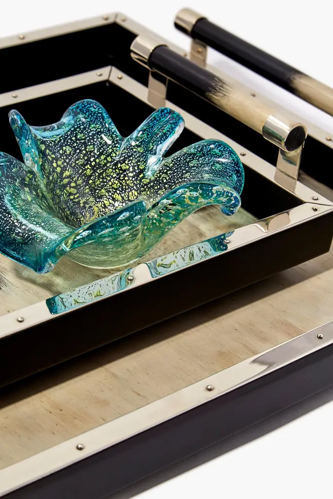 15" x 9" x 1.3"19" X 13" X 1.3"The urban and cosmopolitan Porteño family carries the spirit of the ones born in Buenos Aires city or “Porteño”, as they are commonly known. Its boxes, trays and flower vases have a timeless and esthetic trend setting features that arise from its 100% handmade elaboration in wood painted by hand, with alpaca details.Our pieces are made by hand. One of a kind.Hand painted may vary in color.