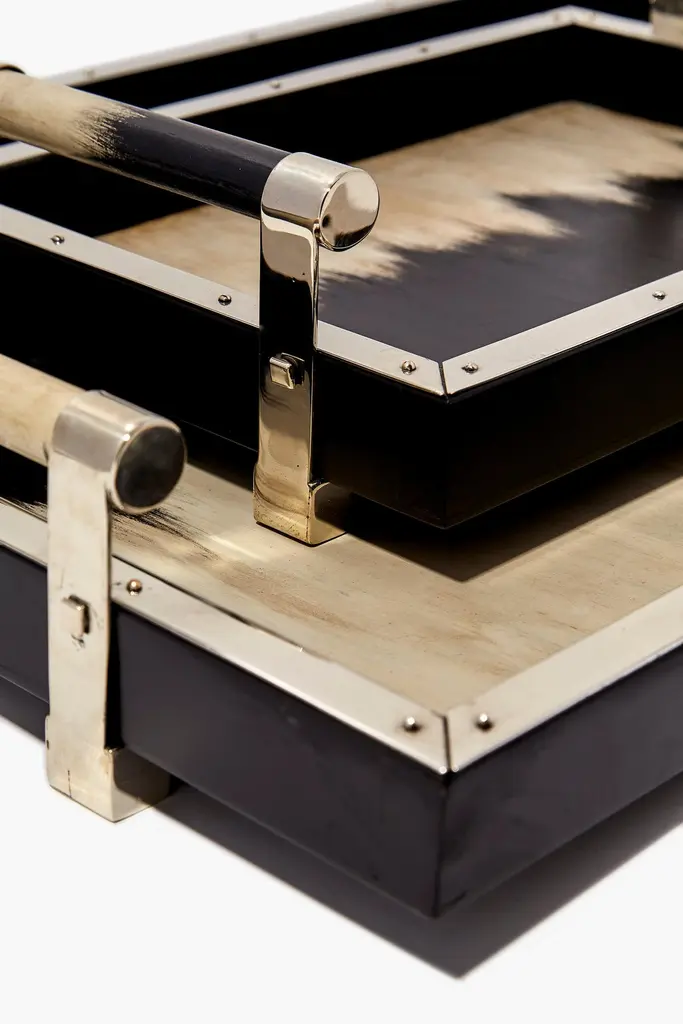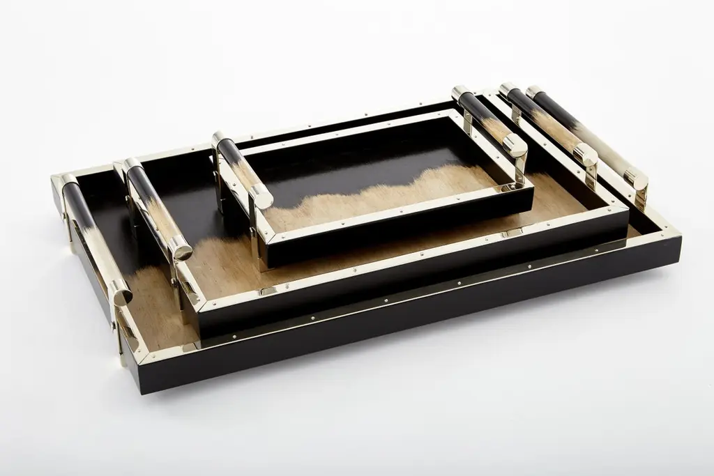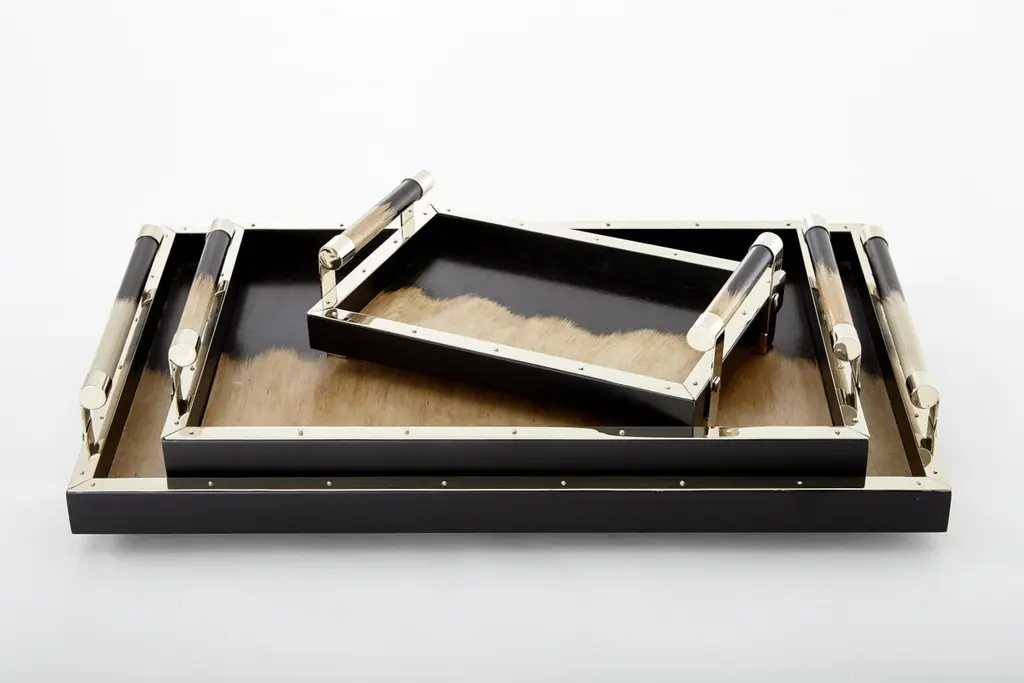 Set Porteño Small, Medium, Large, Black & Cream Hand Painted Wood Trays