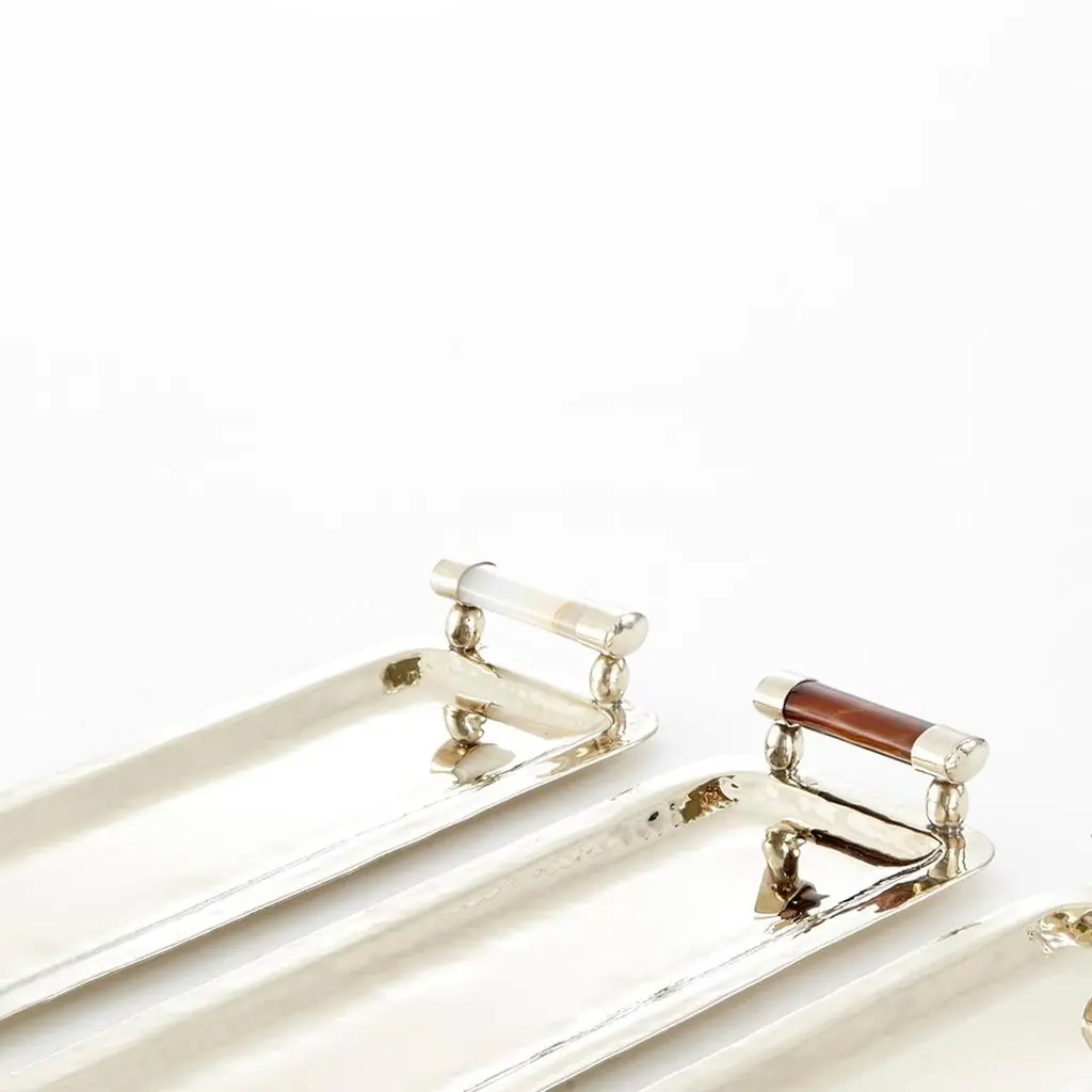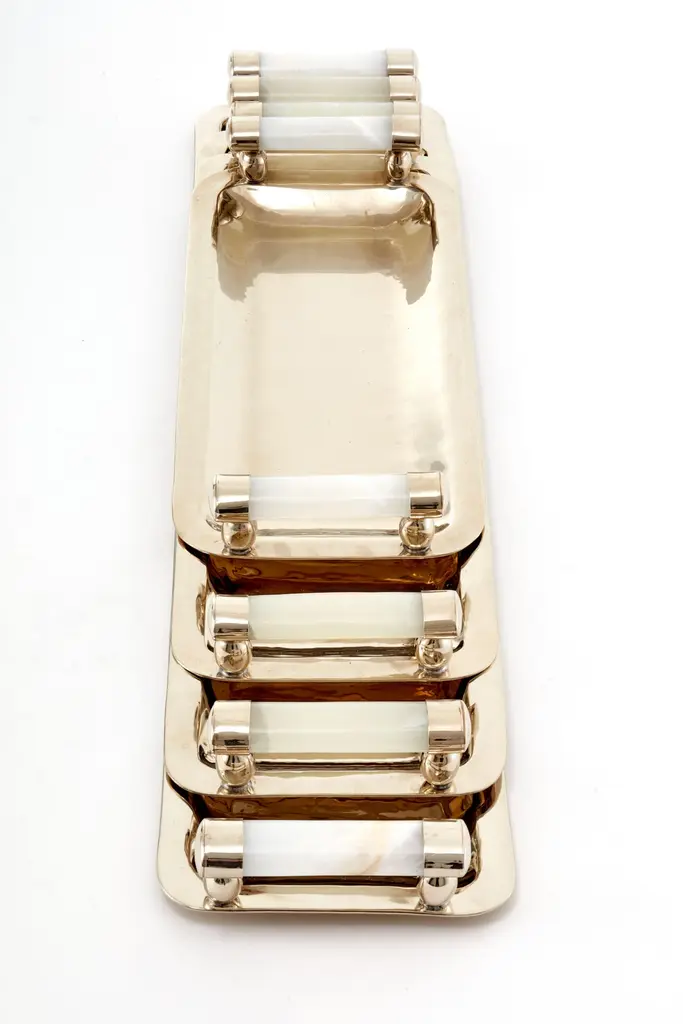 Set Valle Narrow Silver Alpaca & Cream Onyx Stone Trays