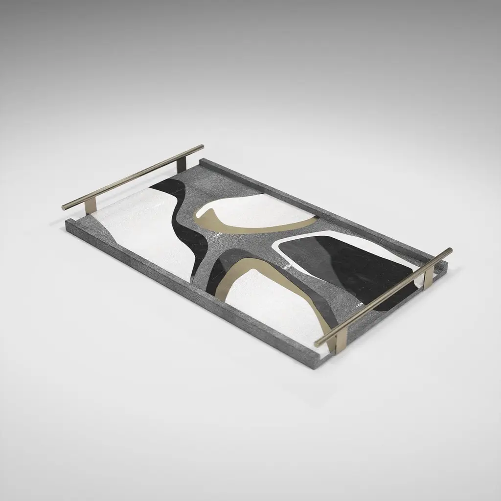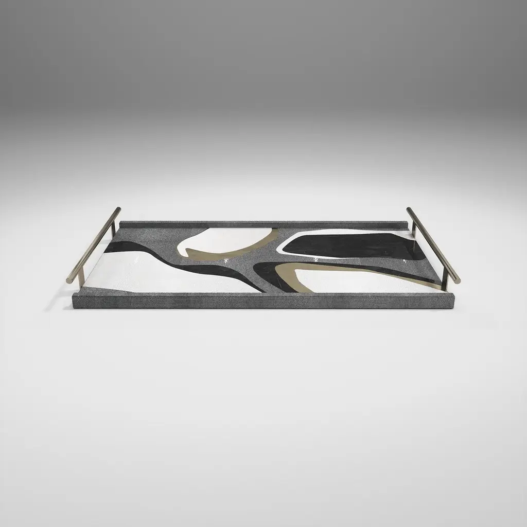 Shagreen Tray Inlaid With Shell And Bronze Patina Brass By Kifu Paris