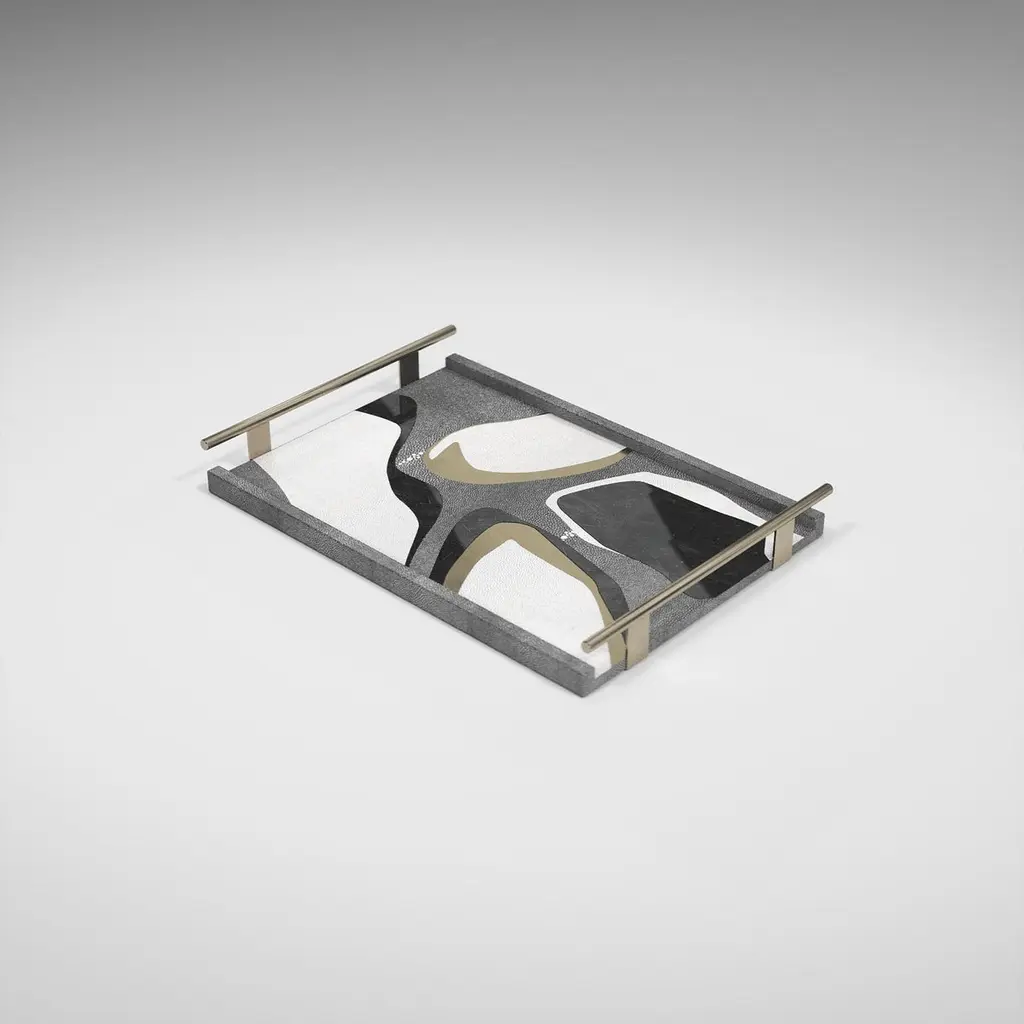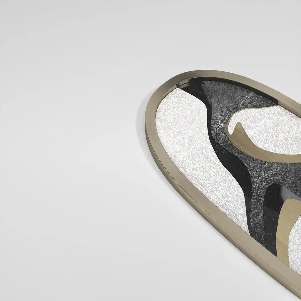 Shagreen Tray Inlaid With Shell And Bronze Patina Brass By Kifu Paris