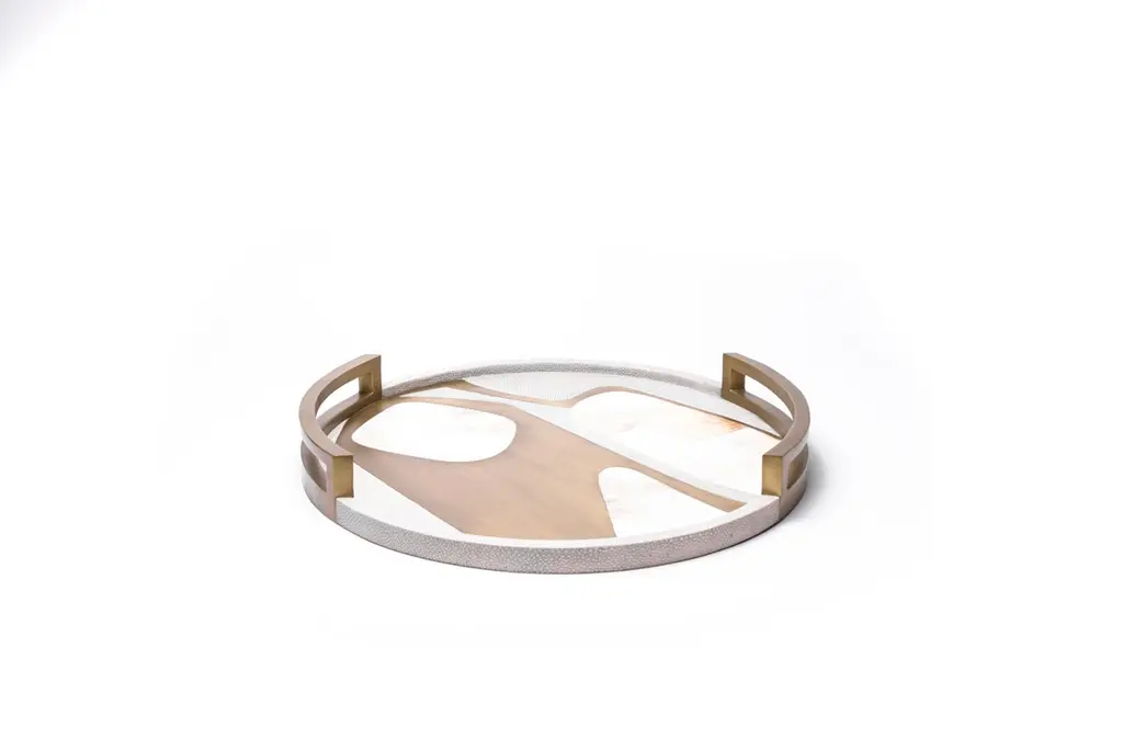 Shagreen Tray With Blue Pen Shell And Brass Inserts By R&y Augousti
