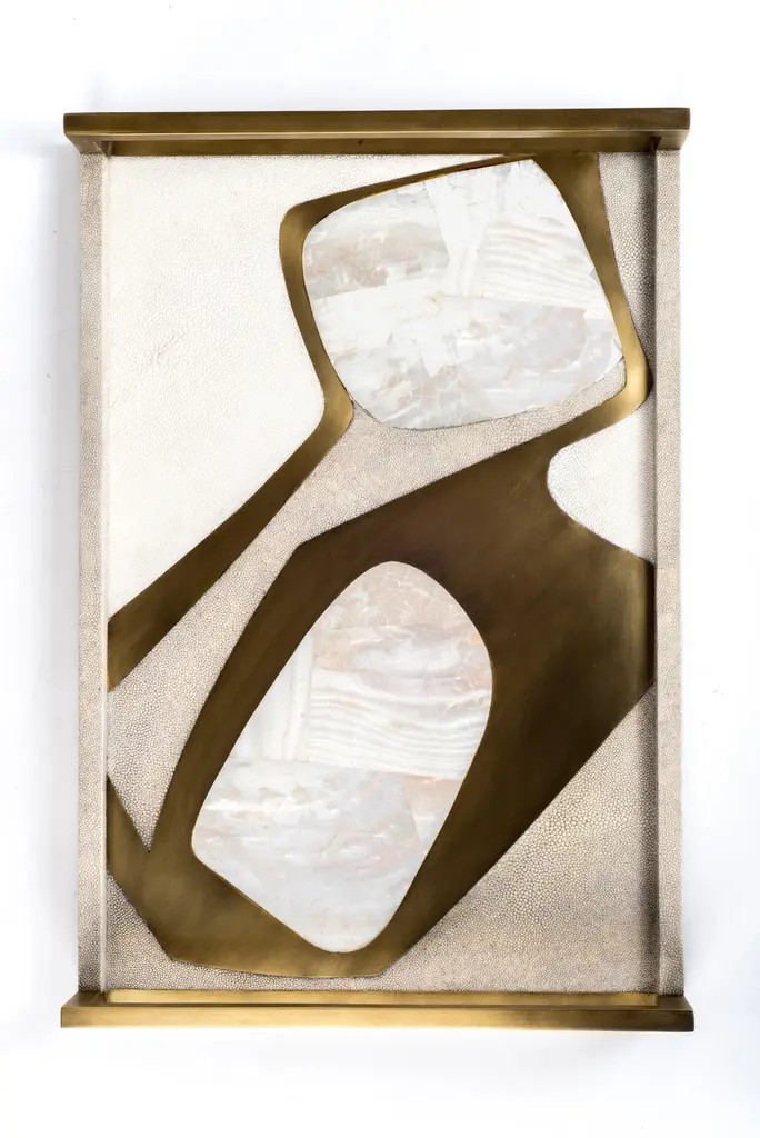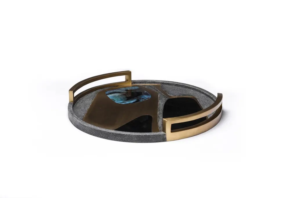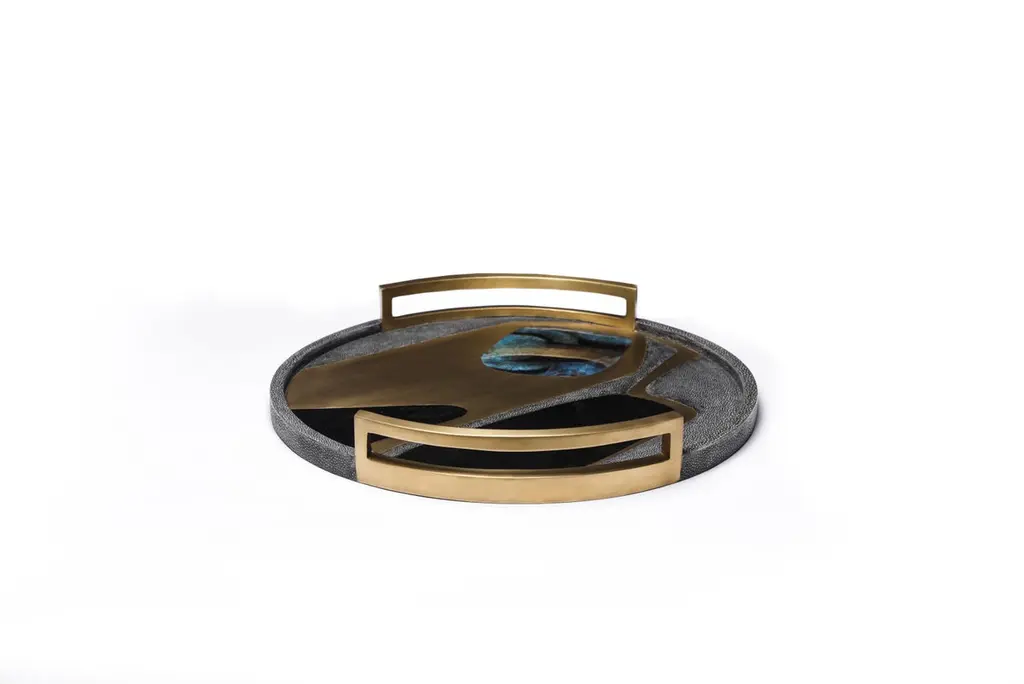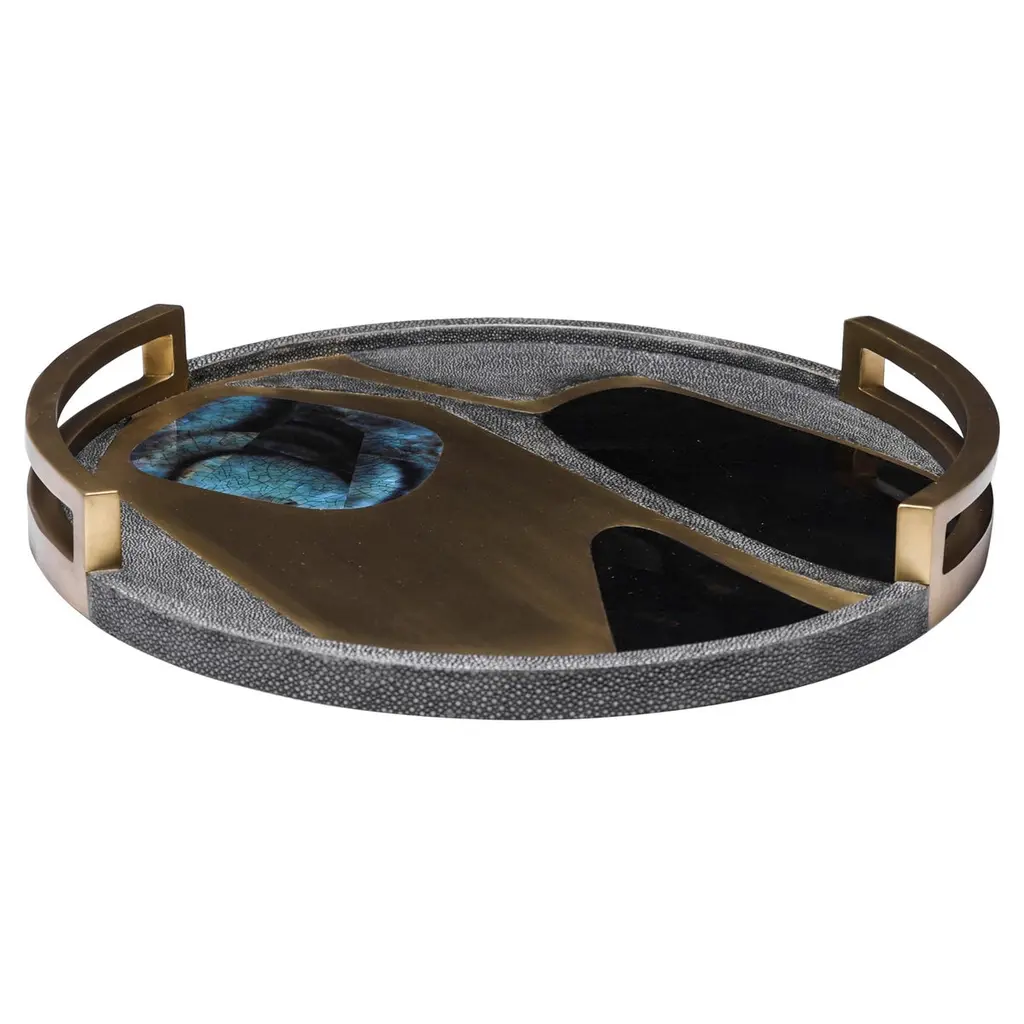Shagreen Tray With Blue Pen Shell And Brass Inserts By R&y Augousti
