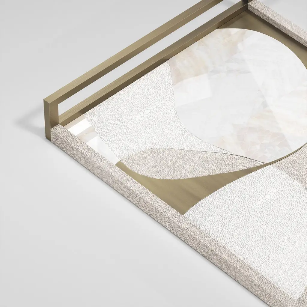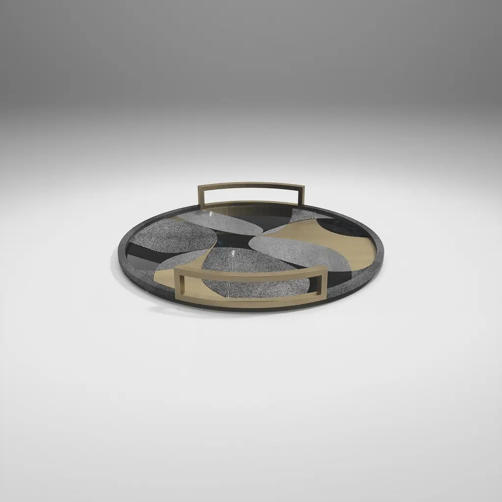 Shagreen Tray With Blue Pen Shell And Brass Inserts By R&y Augousti