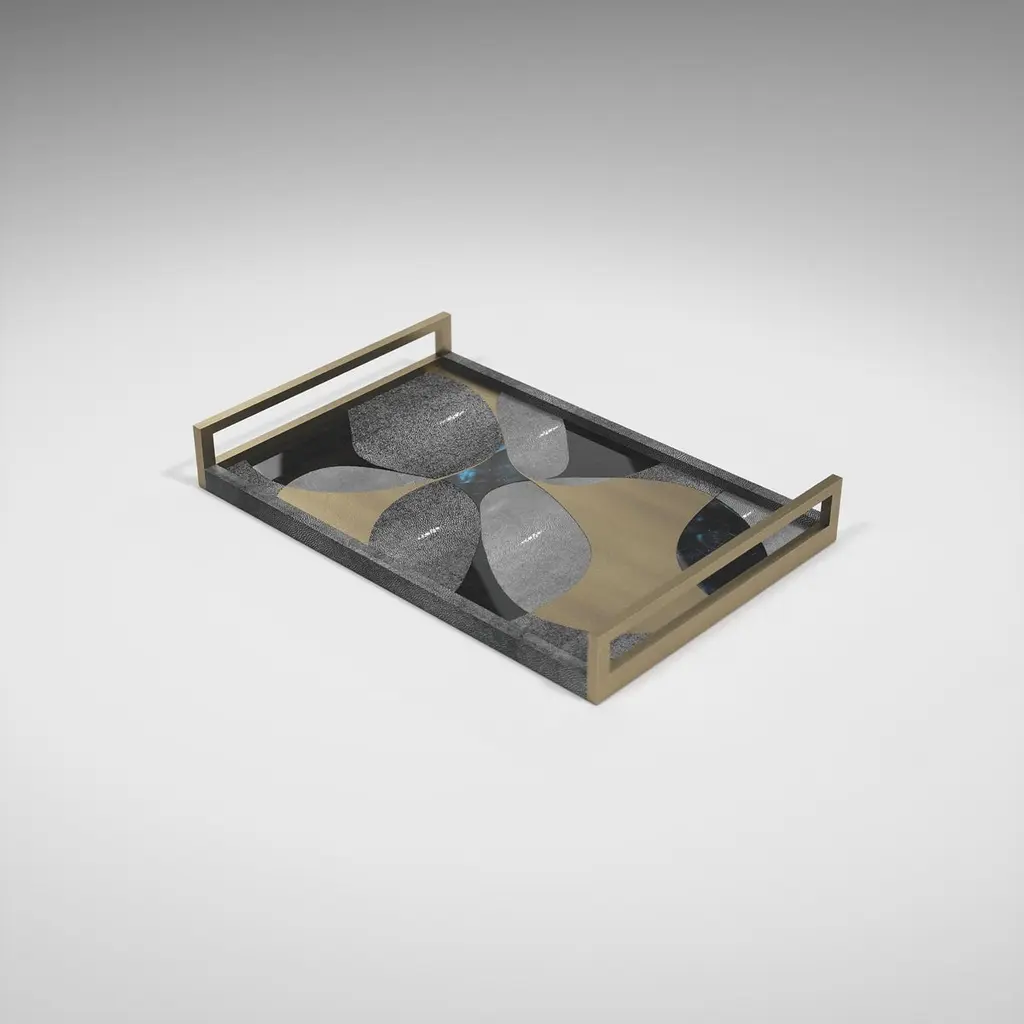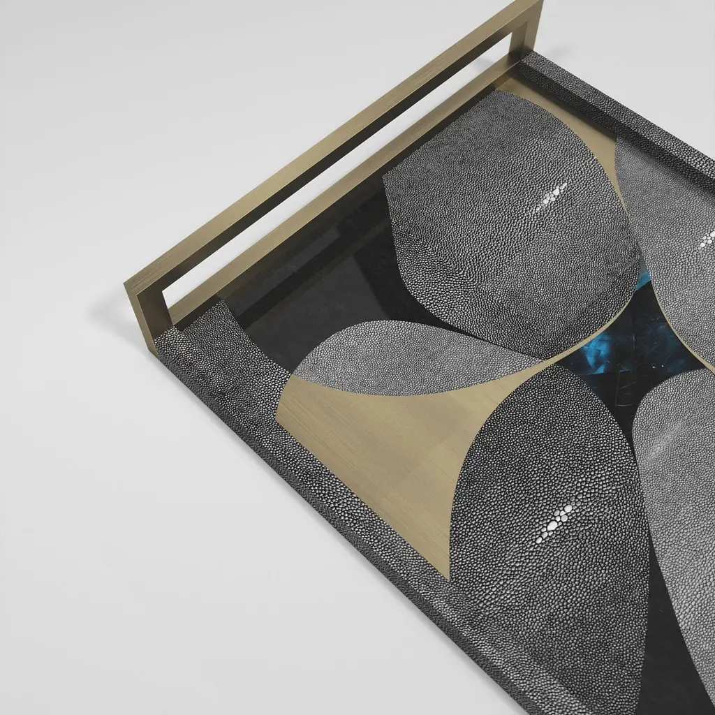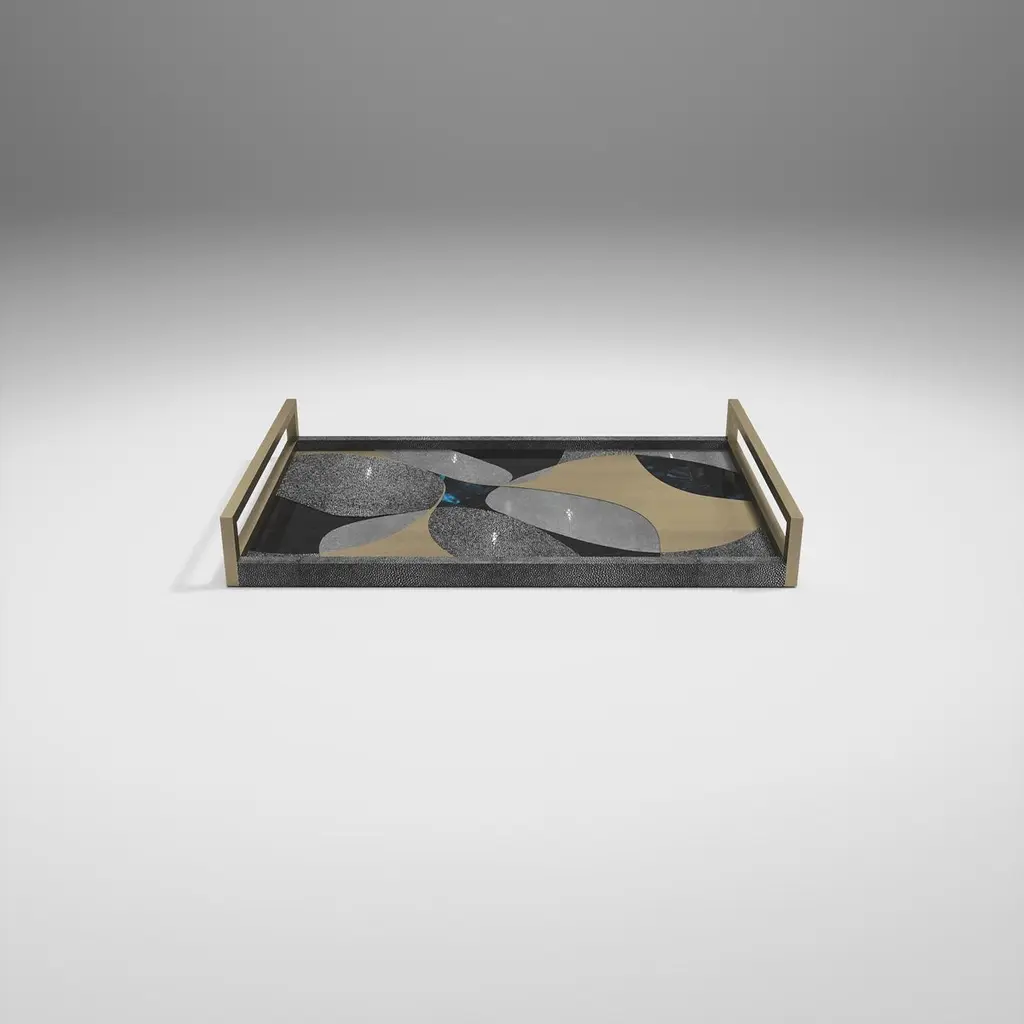 Shagreen Tray With Mother Of Pearl And Brass Inserts By R&y Augousti