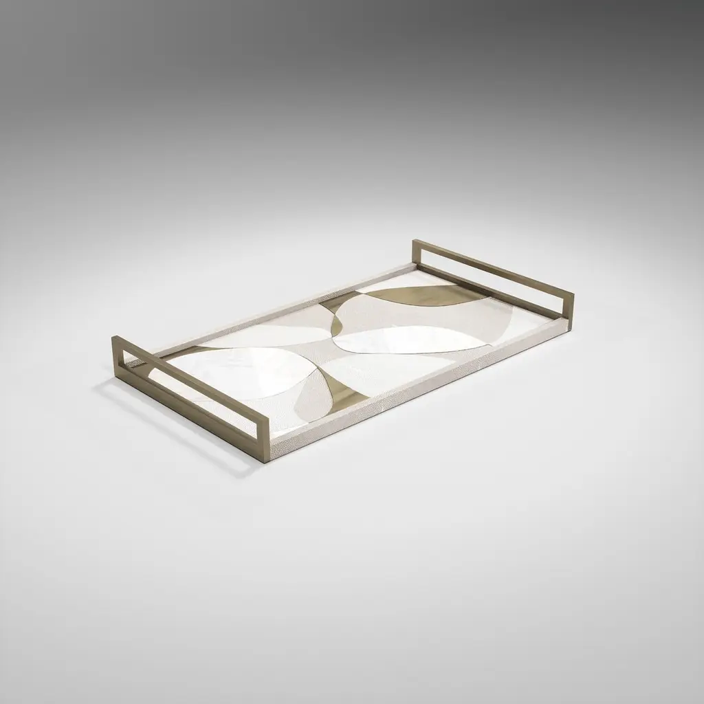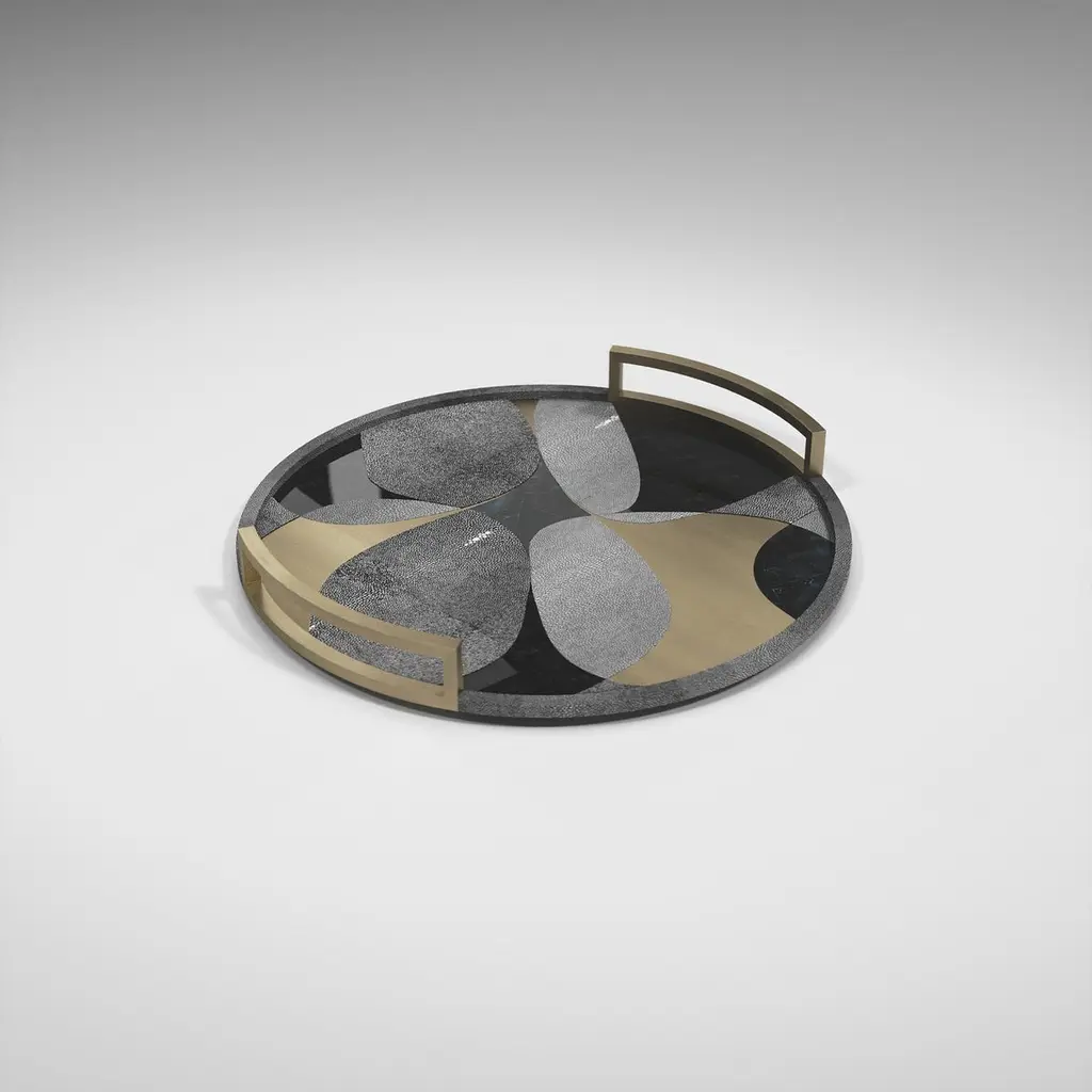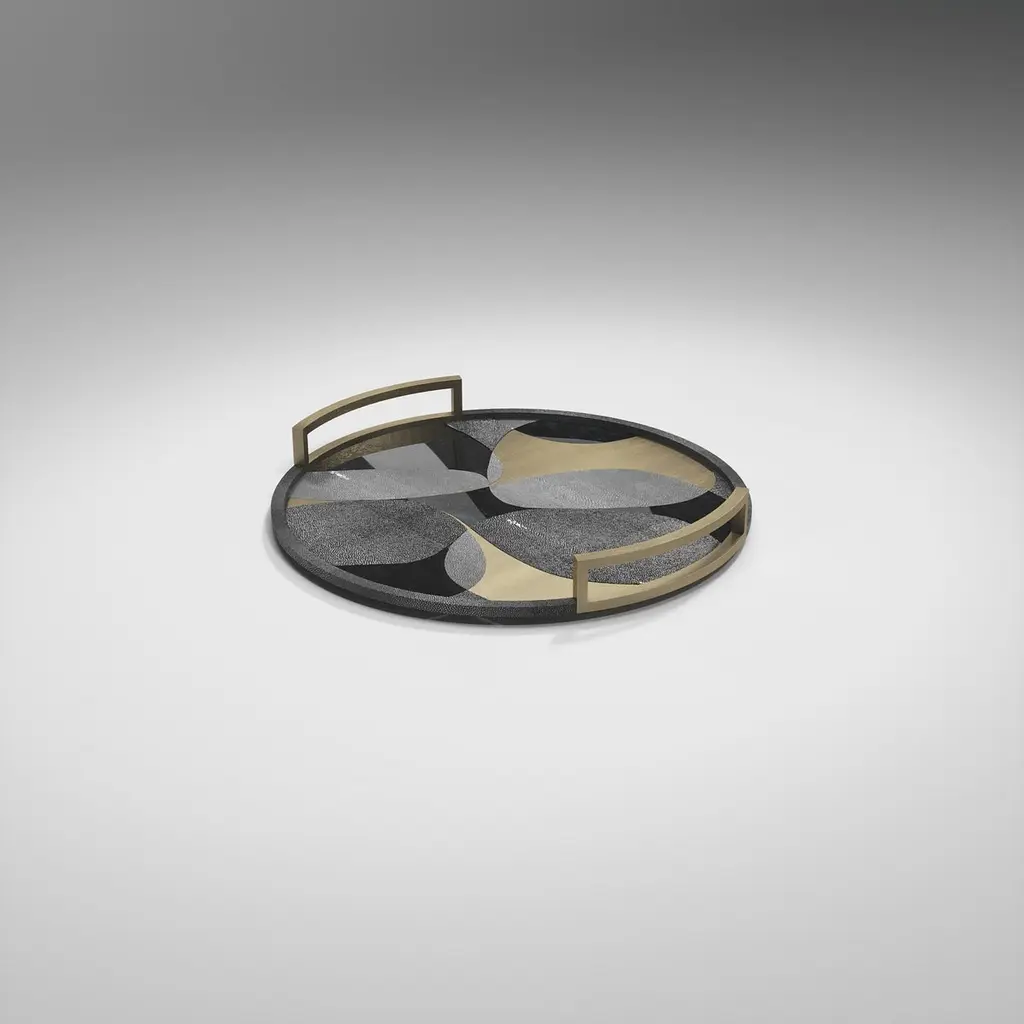 Shagreen Tray With Mother Of Pearl And Brass Inserts By R&y Augousti