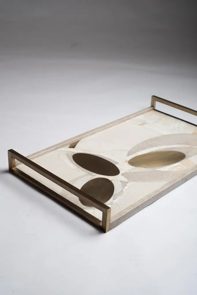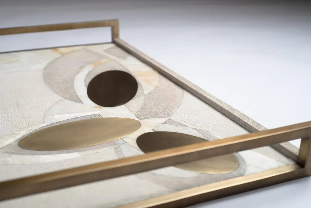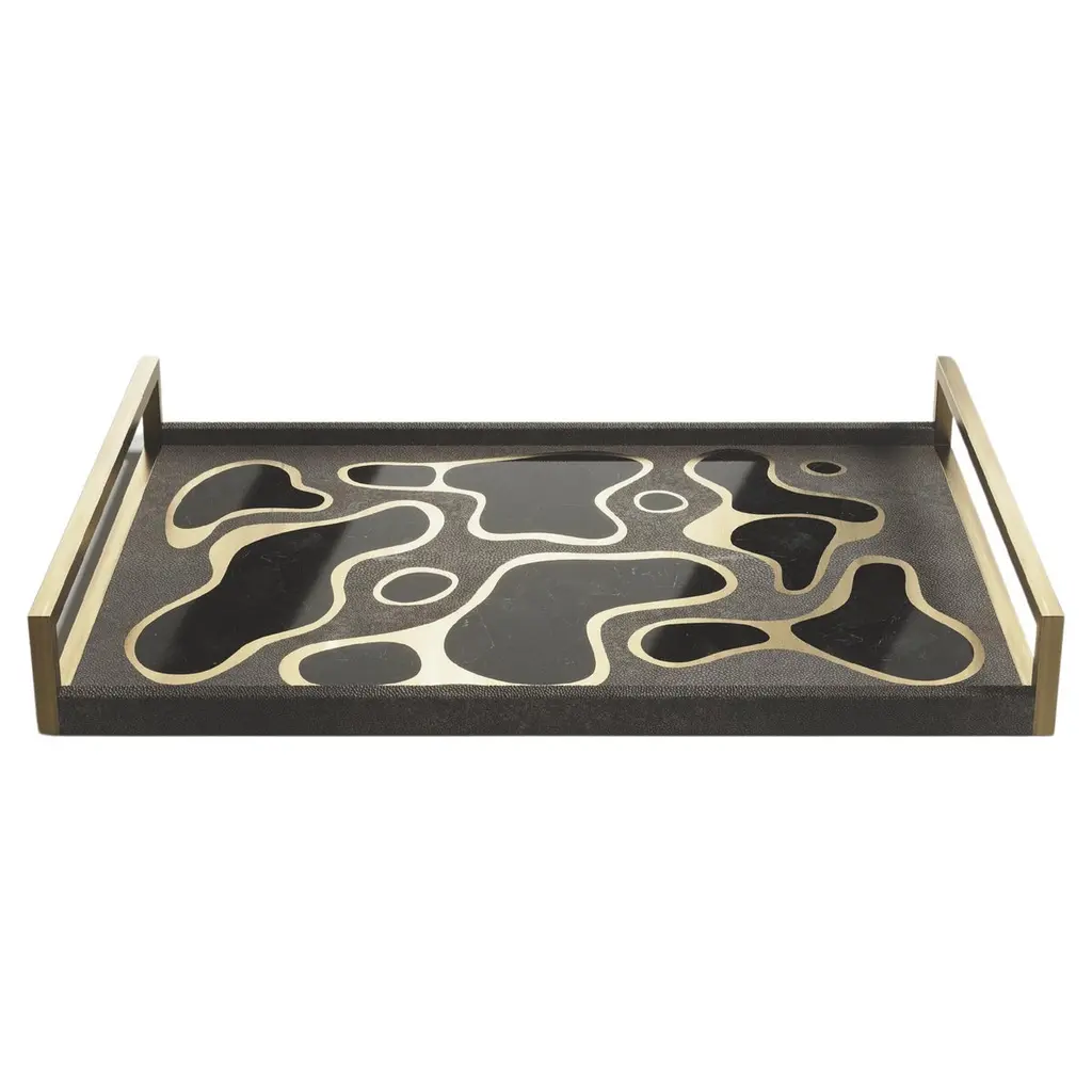 Shagreen Tray With Mother Of Pearl And Brass Inserts By R&y Augousti