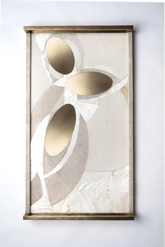 The Paris based label has distinguished themselves since their launch, with their iconic use of shagreen mixed with brass and other exotic materials. All furniture is handcrafted by skilled artisans, ultimately making each piece unique, designed in Paris and produced in the Philippines.The Lunar light tray in large, demonstrates the beautiful signature Augousti inlay work and design aesthetic. This pattern is an abstract interpretation of lunar constellations. Available in other sizes and color variations as well as pattern variations. Measures: 61 x 34 x 1.3 cm All R & Y Augousti pieces are handmade by artisans, ultimately making each piece unique.Wipe clean with soft dry cloth.Acclaimed design duo Ria & Yiouri Augousti have established themselves since the 1990s as pioneers of modern-vintage style through their luxurious Art Deco inspired collections.The Paris based label has distinguished themselves since their launch, with their iconic use of shagreen mixed with brass and other exotic materials. All furniture is handcrafted by skilled artisans, ultimately making each piece unique. All shagreen-covered items should be kept out of direct sunlight, color variants may occur on the stingray and other exotic finishes, but this showcases the Parisian label's commitment to creating authentic luxurious products using natural components.
