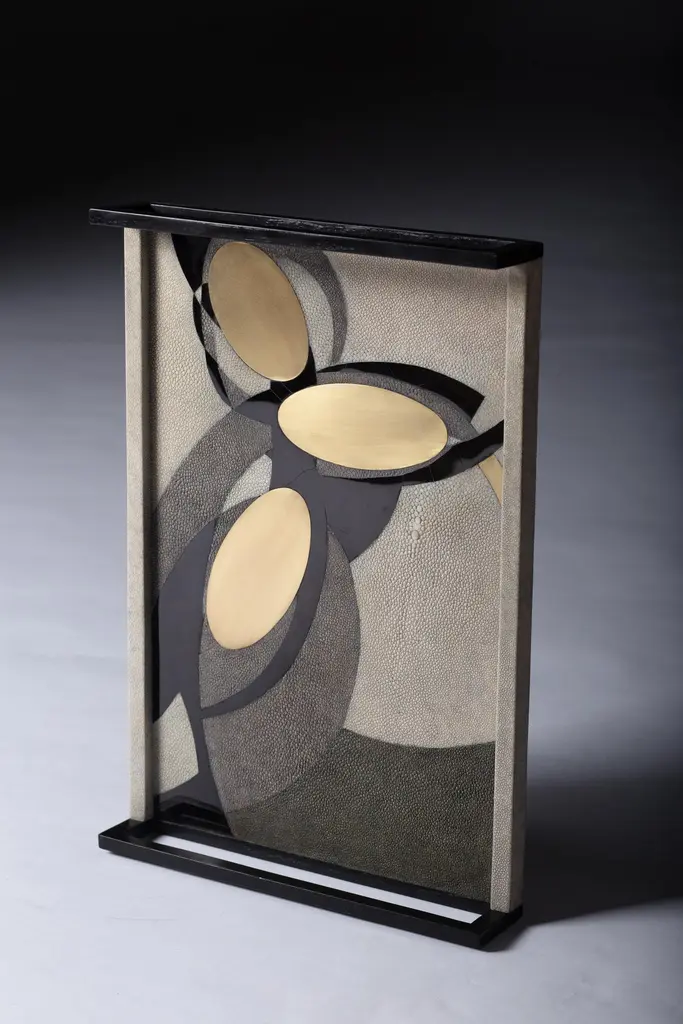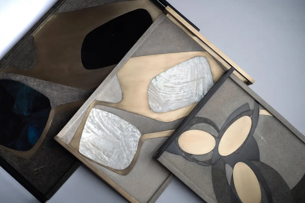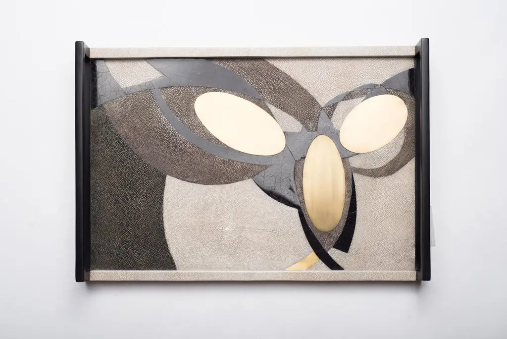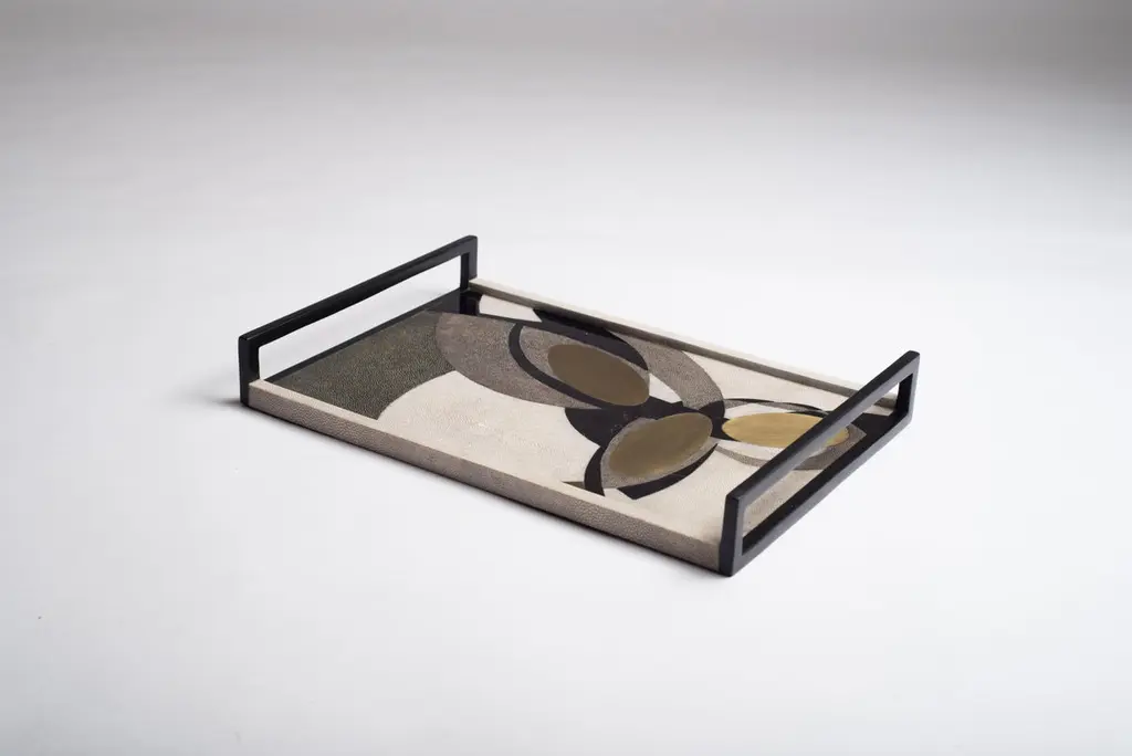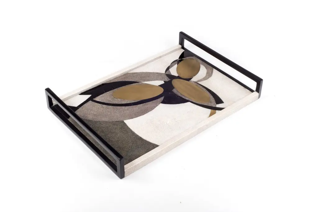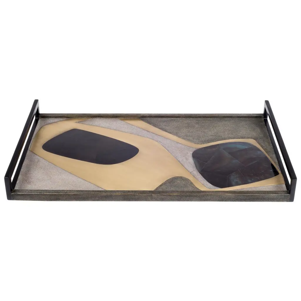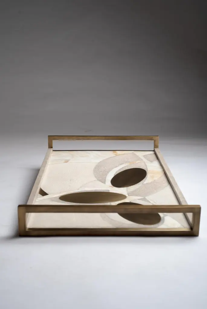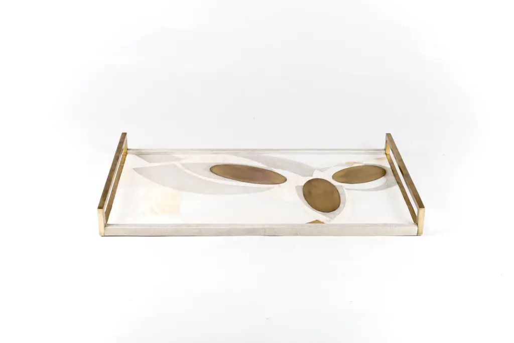 Shagreen Tray With Shell And Brass Inserts By R&y Augousti