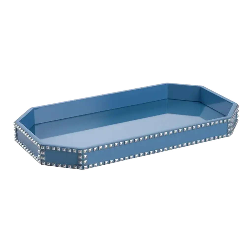 Wood Tray With Hand Applied Studs On Leather Detail. Designed By Shayla Copas.