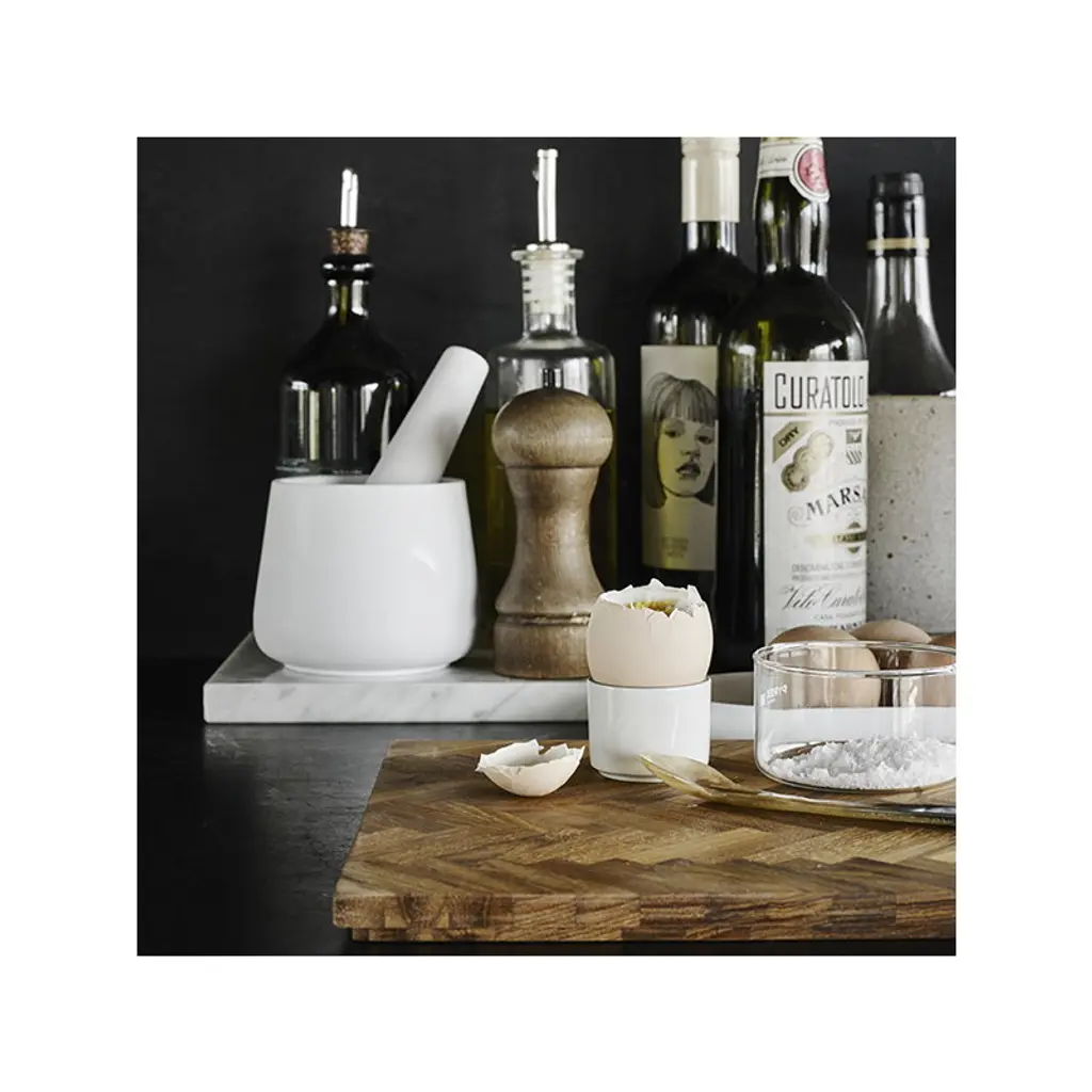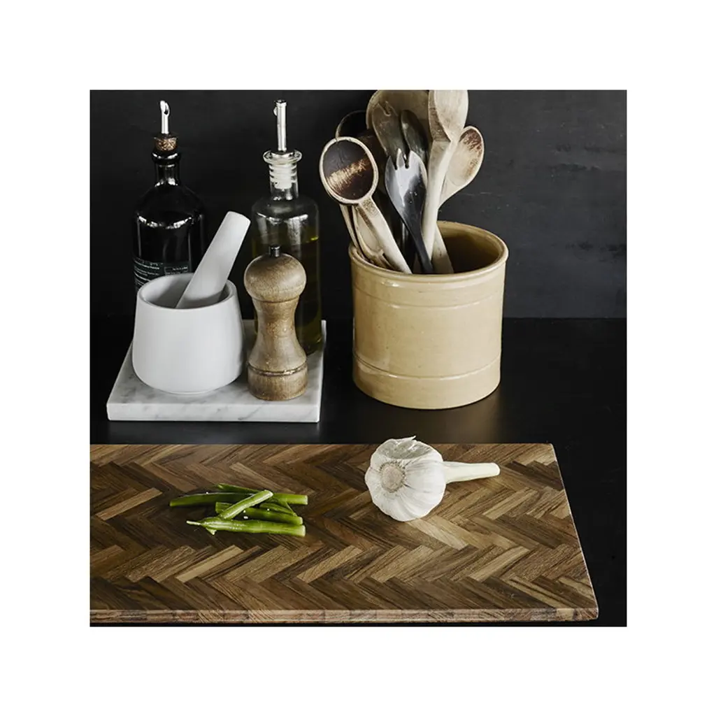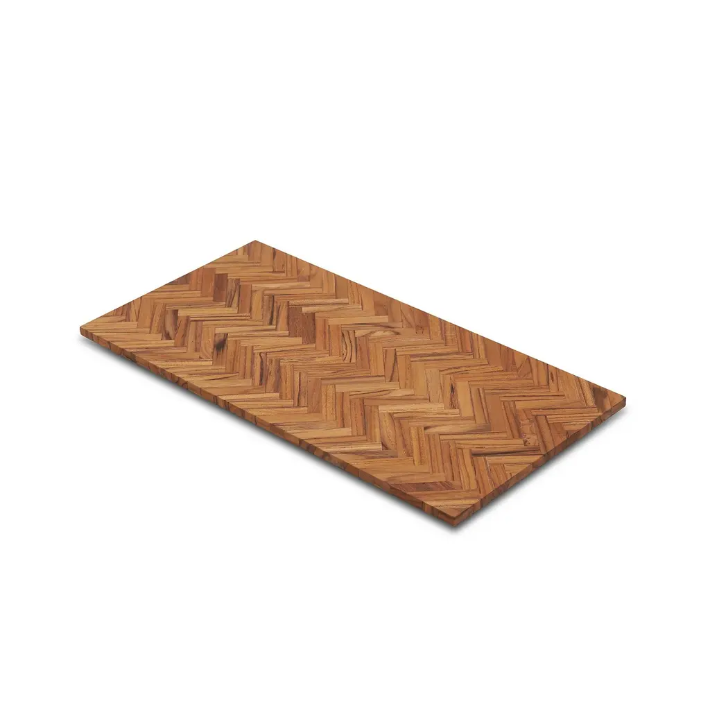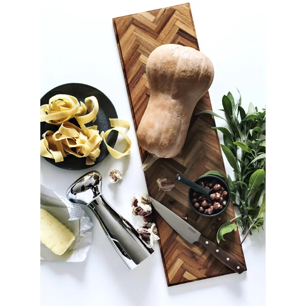 Skagerak's Sild is a beautiful wooden tray that also functions as a cutting board. Made of small teak wood sticks, a herringbone pattern gives the long, rectangular tray a nuanced surface and its name – "Sild" is Danish for herring. Sild was designed by Søren Refsgaardt.