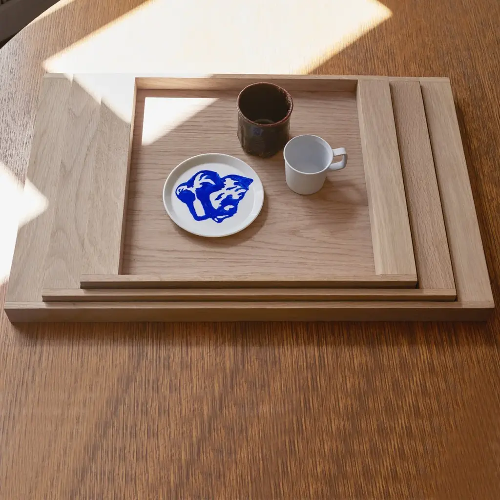 No.10 is Japanese minimalism in a tray. Beautiful, simple and practical. Use it as a serving tray or set it directly on the table as a platter with little bowls of food. No.10 is inspired by the original Japanese banjyu trays, which are used to transport and serve the traditional confection manjū. The name, No.10, is a play on words based on the pronunciation of ban and jyu.