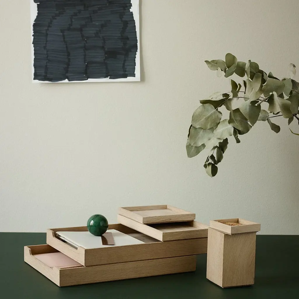 File your papers, notes and receipts with wooden letter tray. Combine it with the other designs in the Nomad series to add more functions.