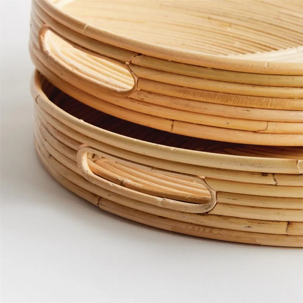 Skylar Coastal Beach Natural Rattan Oval Serving Tray - Set Of 2