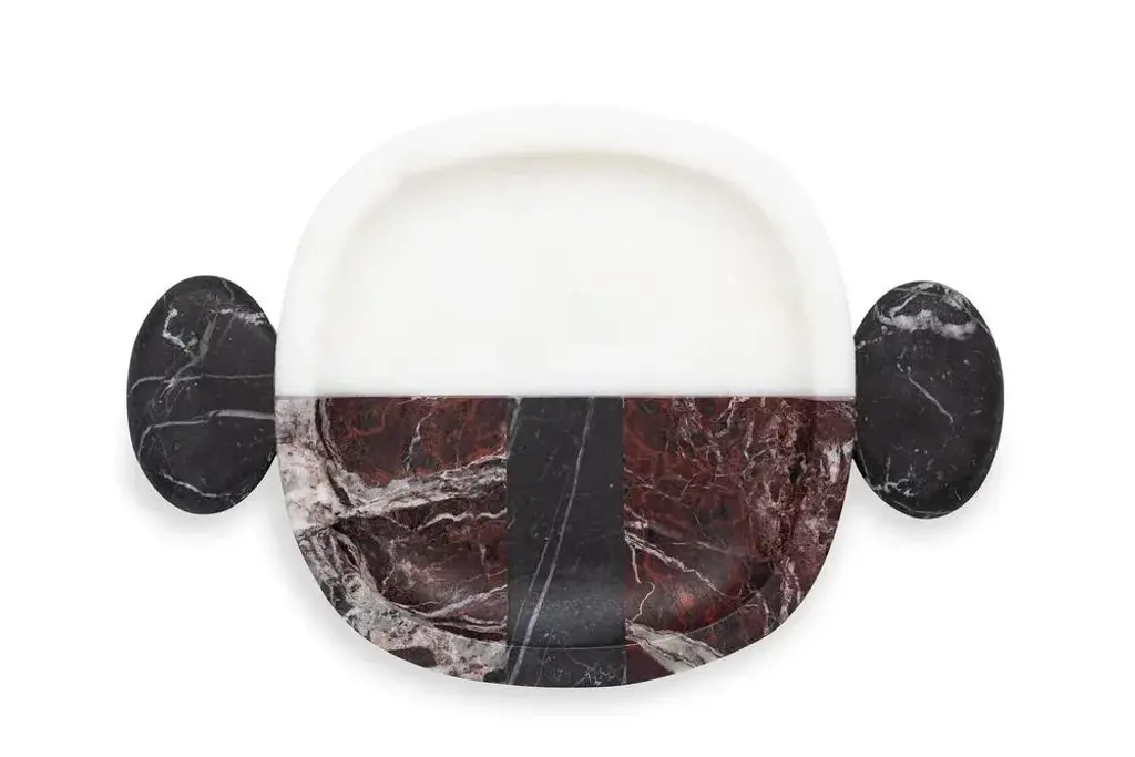 Set of 3 marble small plates and tray by Matteo Cibic Dimensions: Plates: 22.5 x 15 x 2 cm Tray: 40 x 29 x 4 cm Materials: Bianco michelangelo, nero marquinia Rosso Levanto Please note that the Cibic pieces with “ears” or tray handles are ornamental and not functional. Use them can cause breaks and is unsafe. Customer has to read the instruction that accompany the delivery of these pieces. This piece is attributed to the mentioned designer/maker. It has no attribution mark and no official proof of authenticity, however it is well documented in design history. I take full responsibility for any authenticity issues arising from misattribution