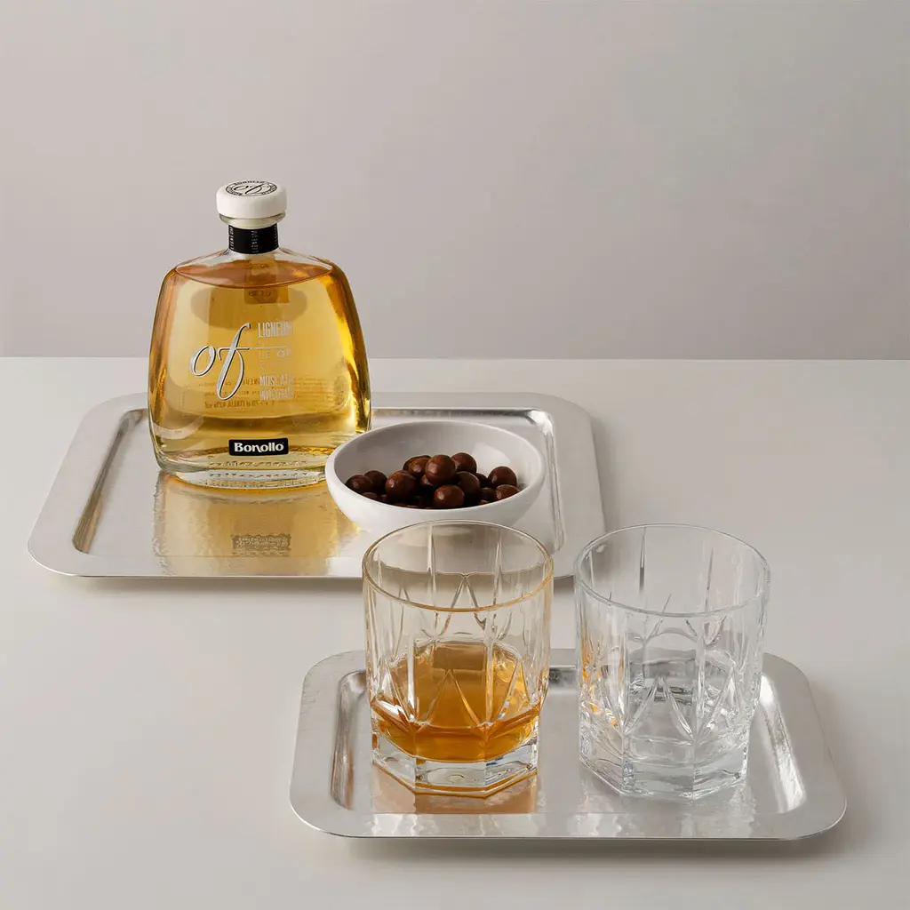 The Materia Viva tray showcases a geometric-organic aesthetic that blends a structured profile with a vibrant hammered texture. Entirely handcrafted by master artisans, this piece embodies soft geometry, rich texture, and an evocative design that naturally complements any interior style. Ideal as an elegant accent for your bar table or for creative arrangements during home gatherings. A larger version is available in the Artemest catalog, and additional sizes are available upon request, please contact our Concierge for more information.