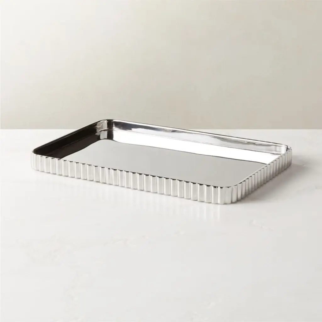 Small Materia Viva Rectangular Hammered Satin Finish Silverplated Tray