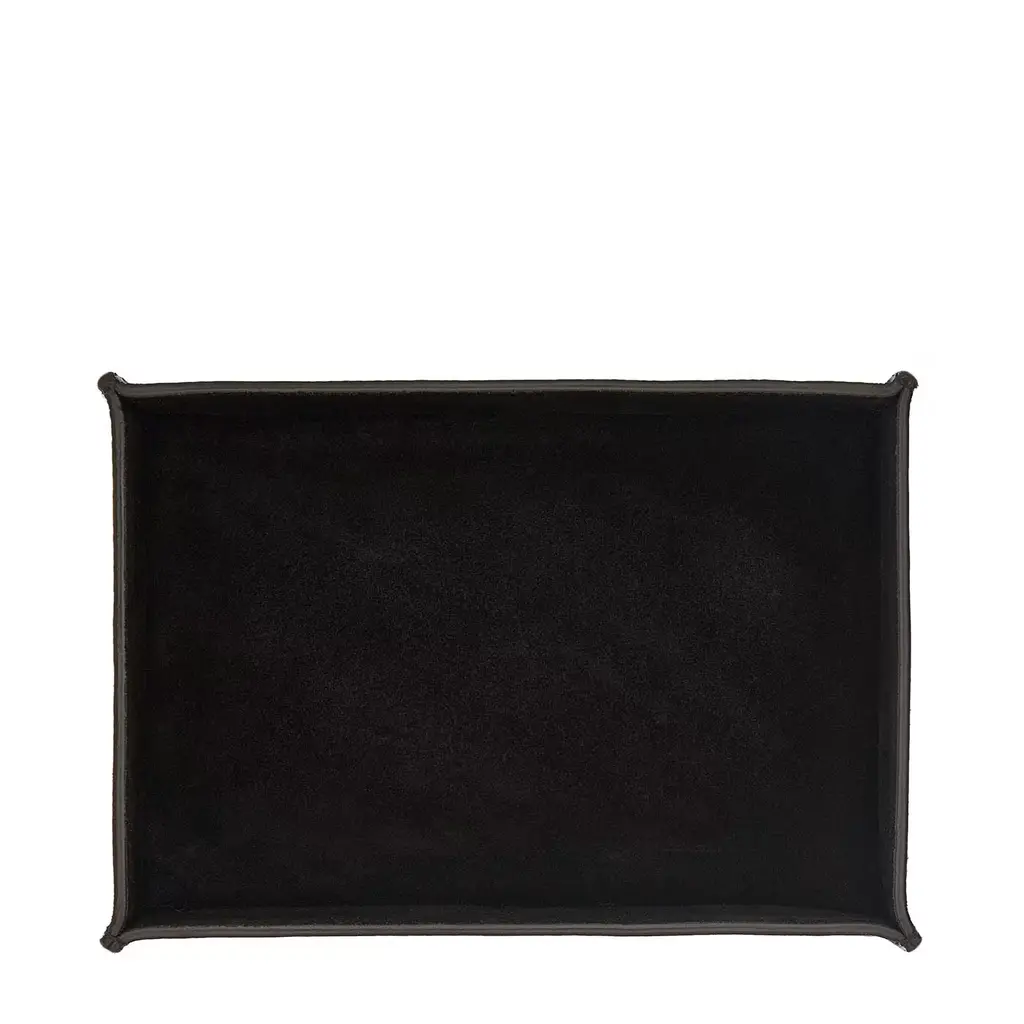 Exquisitely crafted, this small valet tray in black leather effortlessly merges elegance with practicality. Ideal for organizing desk essentials, holding valuables, or accenting a stylish entryway, its structured design features hand-stitched corners and a sumptuous suede lining. Made from the finest vegetable-tanned leather, it encapsulates both timeless sophistication and modern versatility.
