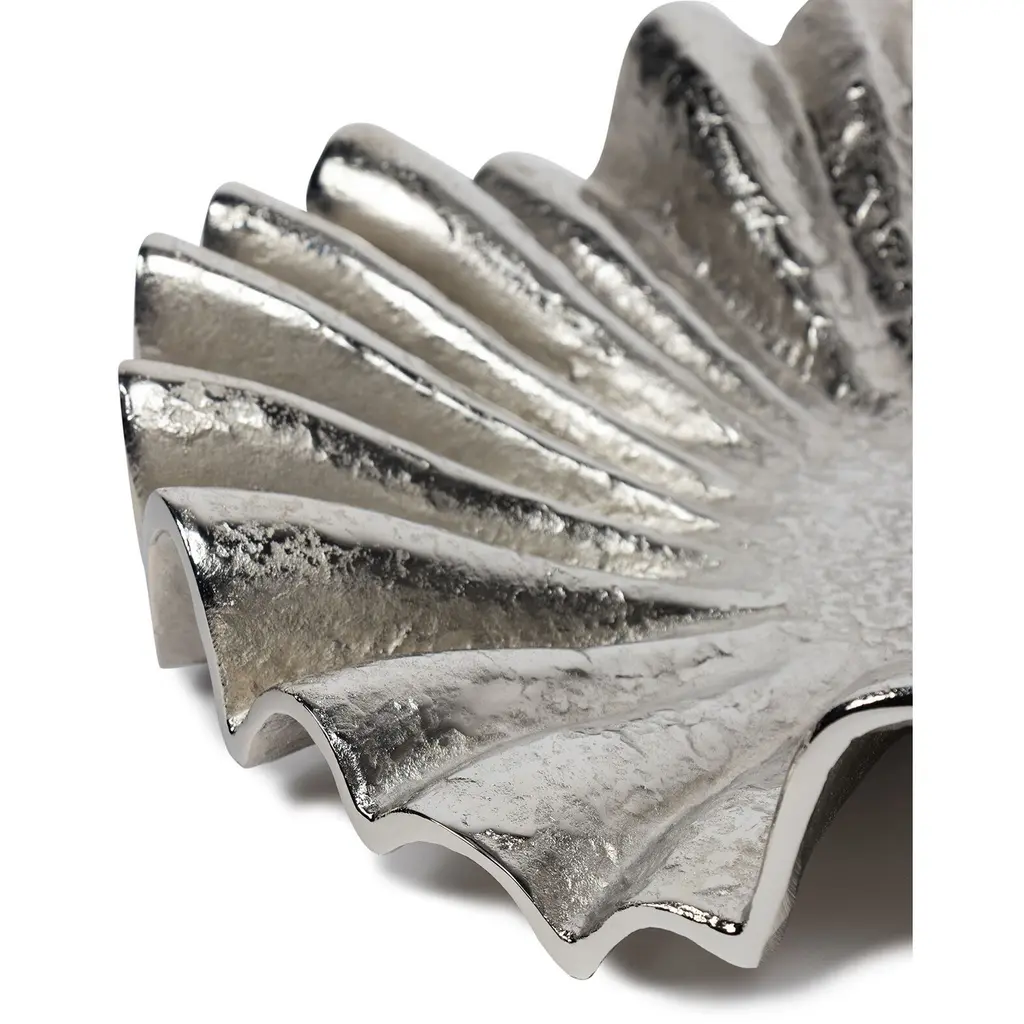 Not your grandma's lace doily. With a dramatic frill, our cast aluminum Soleil Metal Ruffle Plate adds a frisson of energy to any table. This decorative piece is finished in a patinated nickel that pairs beautifully with any palate from modern glass tables, light wood, and black leather.