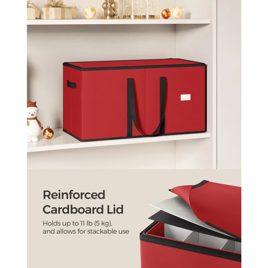 Songmics Christmas Ornament Storage Box Dual Zippers Stackable Christmas Storage Container With Lid 8 Trays, 600d Oxford, 3-inch 128 Slots Cherry Red
