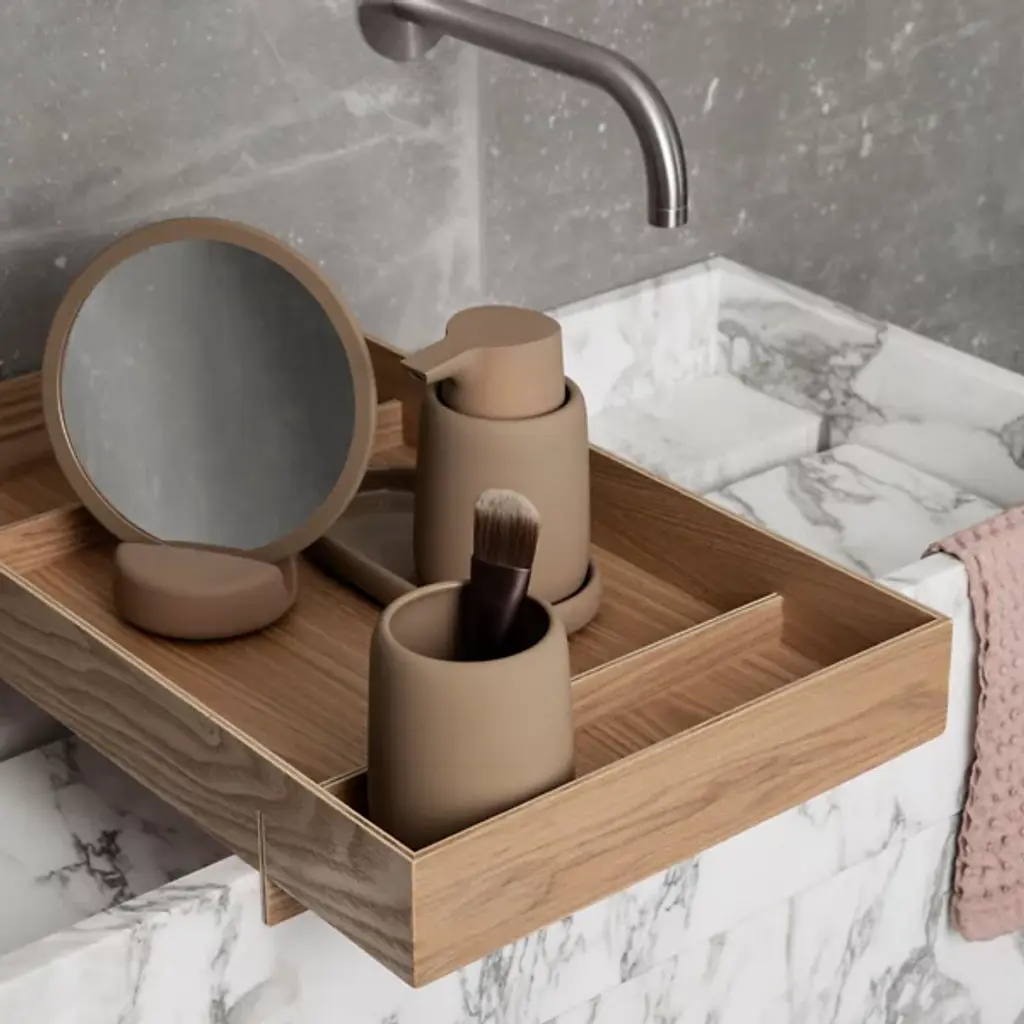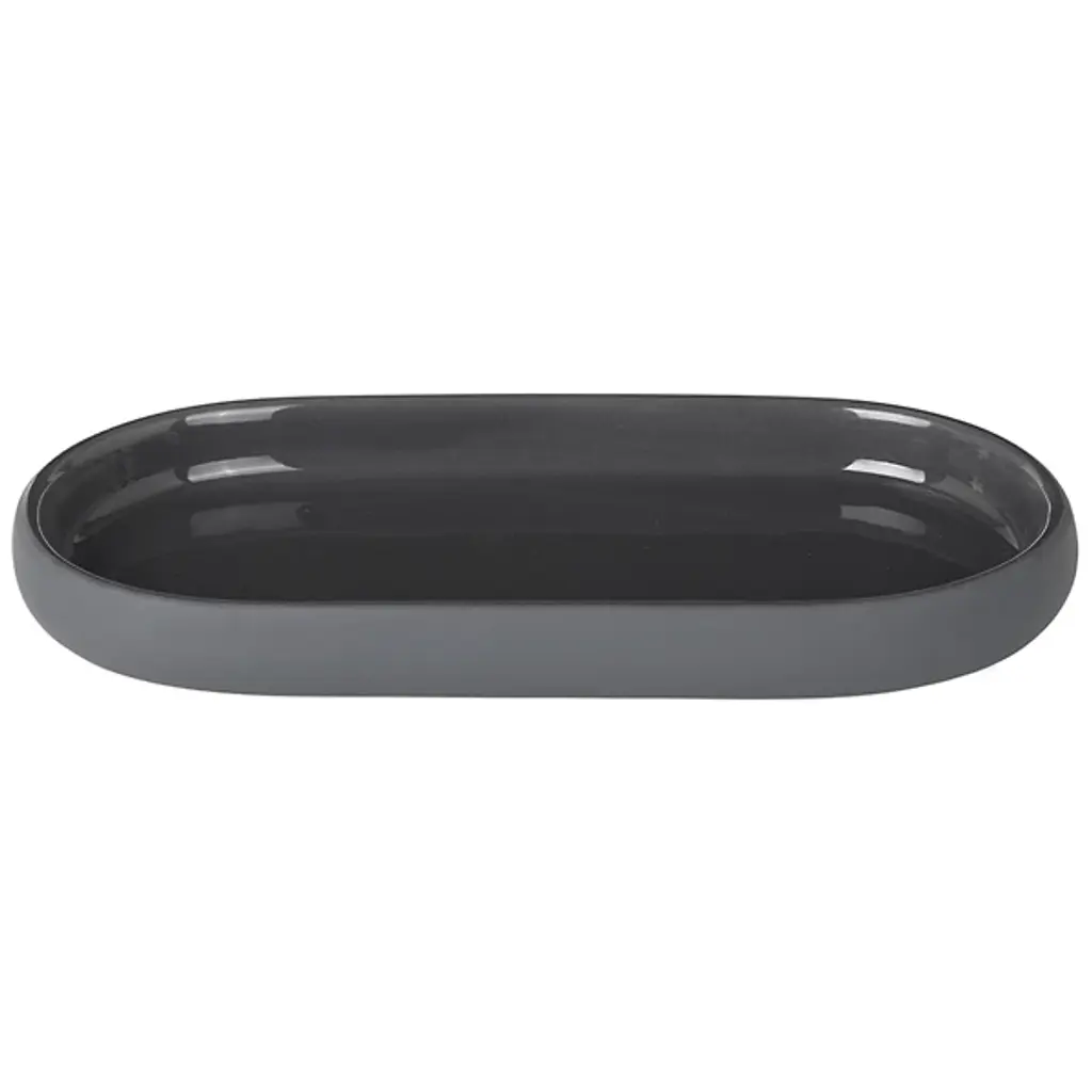 The SONO Oval Tray, Set of 2 from Blomus is a simply stunning piece. Offers a stylish way to store delicate items or arrange soaps and any other bathroom necessities. Features an intriguing oval shape with a matte finish on the outter side with a silky glazed finish on the inside.