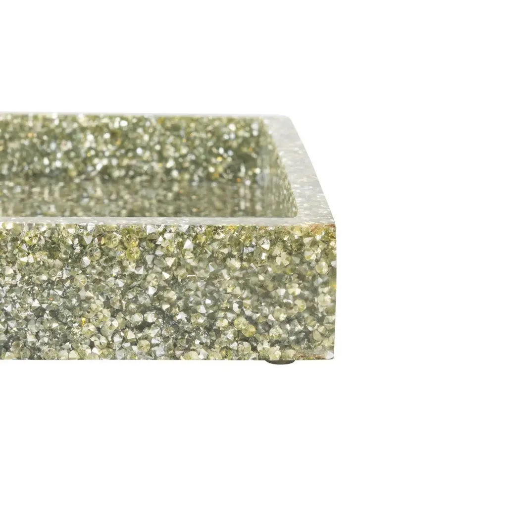 The Luminous Guest Towel Tray is a captivating piece that merges opulence with practicality. This exquisite tray, part of our Luminous Bathroom Collection, is adorned with thousands of rhinestones that create a sparkling mosaic, capturing attention and elevating the ambiance of your bathroom. Designed for both form and function, this tray is not just a holder; it's a statement accessory that adds a touch of glamour to your bathroom decor. The precision-cut edges ensure a smooth rounded touch, emphasizing the luxurious feel of the piece. The radiant sparkle of the rhinestones is encased in durable cast resin, promising enduring elegance. Measuring 10” x 6”, the Luminous Guest Towel Tray perfectly accommodates guest towels and instantly transforms the simple act of reaching for a towel into a glamorous experience. To clean the towel tray, simply run it under water and use a delicate brush to remove debris.