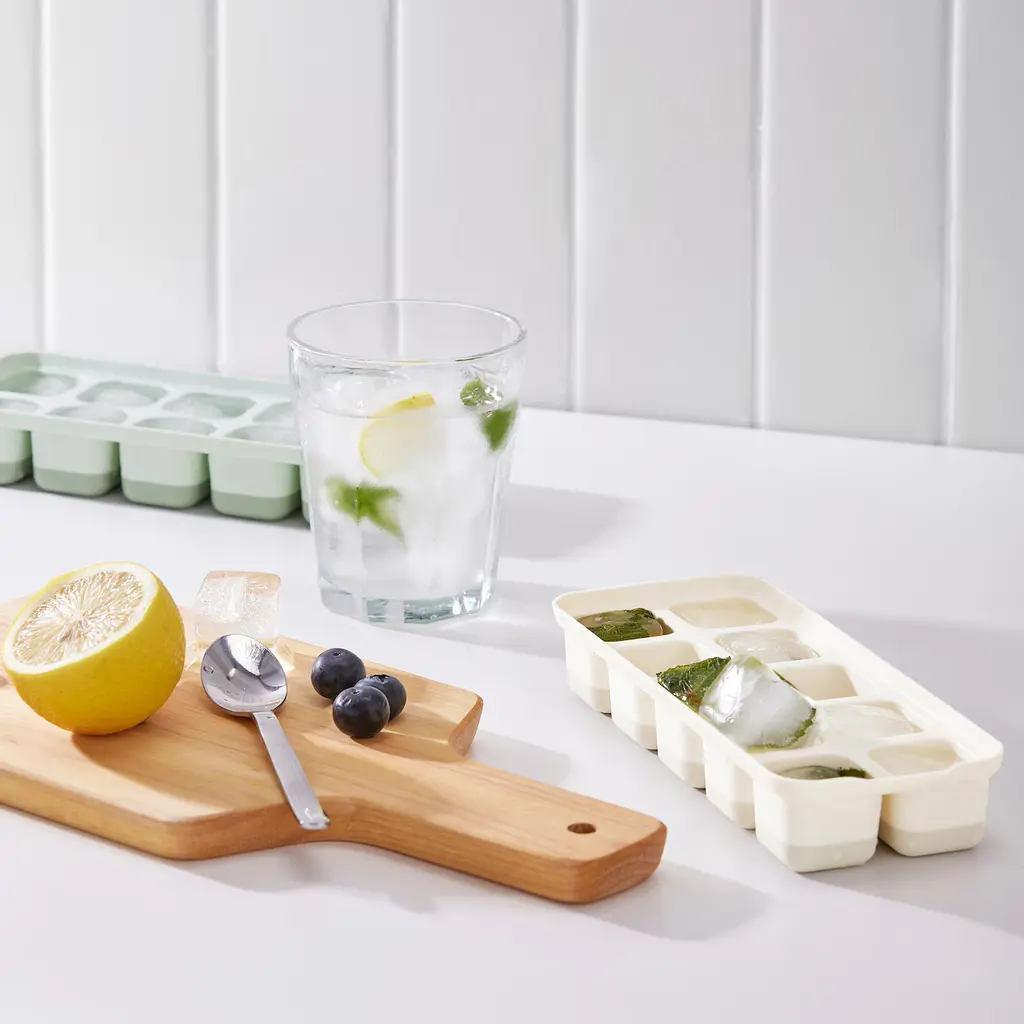 SPJUTROCKA Ice cube tray with lid - mixed colors. These 2 ice cube trays with lids help you make fresh ice for parties and everyday beverages – without spilling. The ice cubes are easy to remove thanks to the flexible material of the tray’s bottom.