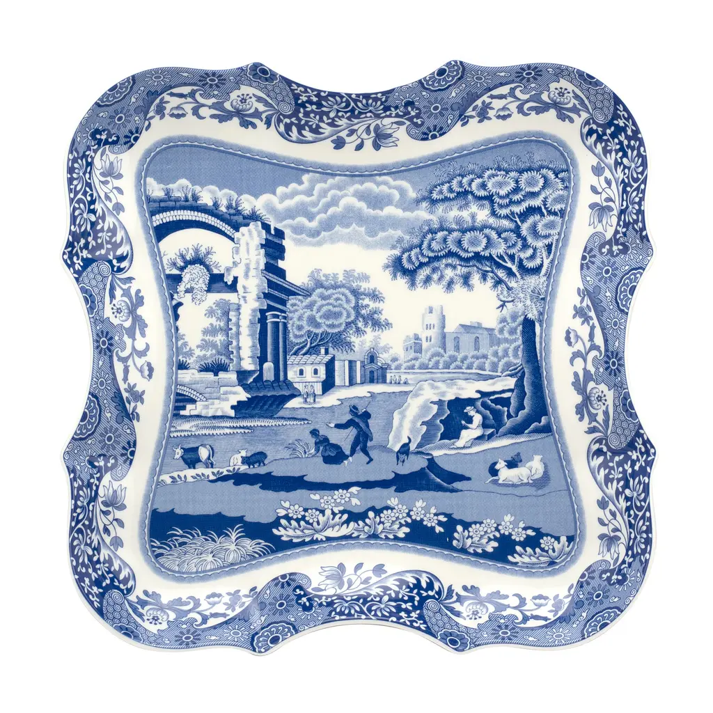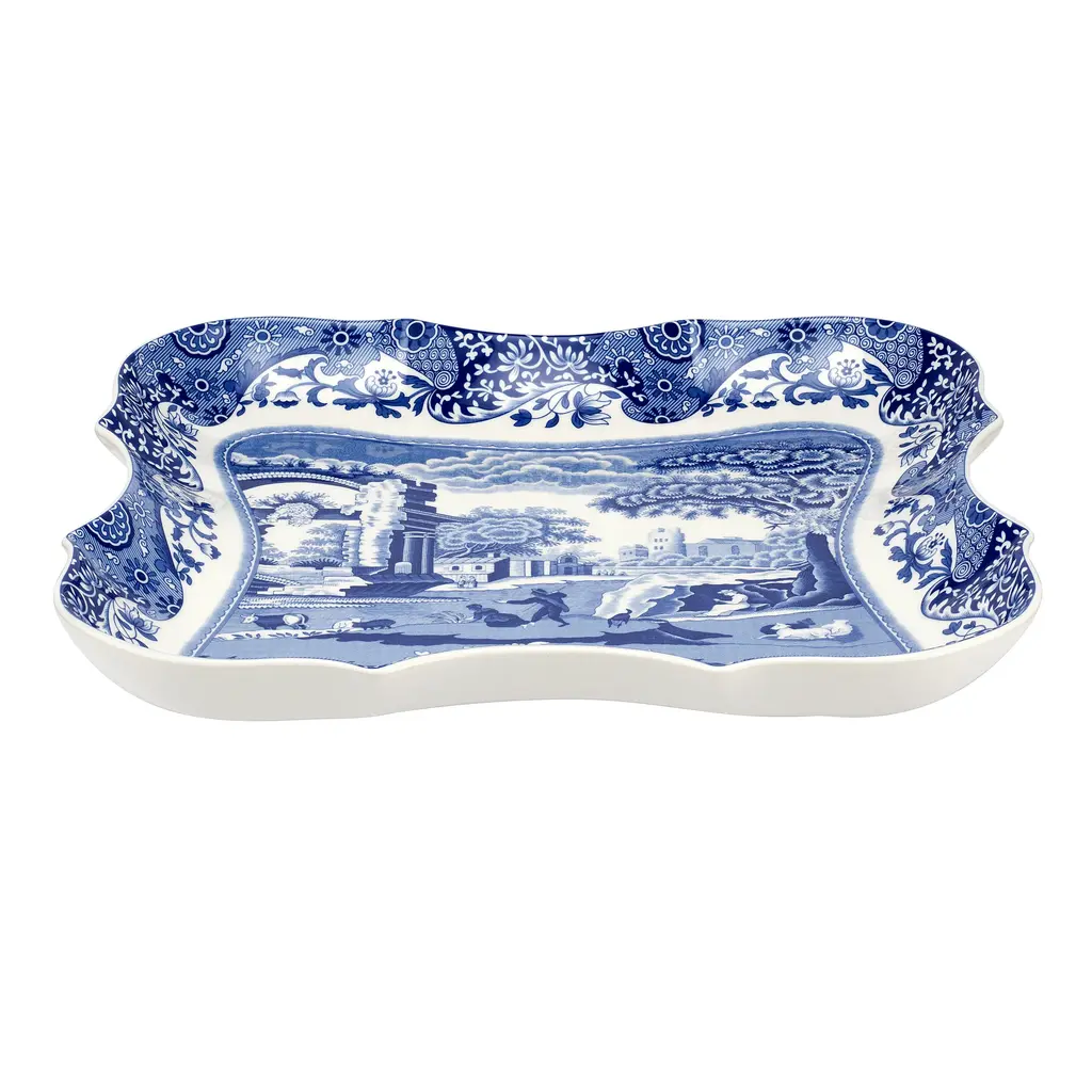 Spode's extraordinary Blue Italian design is known for bringing effortless charm and timeless style to homes across the globe since 1816. Over 200 years later, at the centre of those special family moments, elegant dinner parties and as essential accent pieces in the home, Blue Italian is adored as an iconic British design. With its finely detailed 18th century Imari Oriental border encompassing a stunning scene inspired by the Italian countryside and renowned for its strength and durability, Spode's Blue Italian has something special for everyone, from gifts that will last a lifetime to the roasting dish that serves your family.Spode 250th anniversary giftware created in Blue Italian, features pieces in silhouettes updated for today's home. Anniversary pieces are backstamped with the Spode 250th Anniversary logo and packaged in a lidded gift box. This beautiful devonia tray is a fresh addition to the table. Layer in a small bowl and use for a chip and dip. Care Instructions: Dishwasher Safe