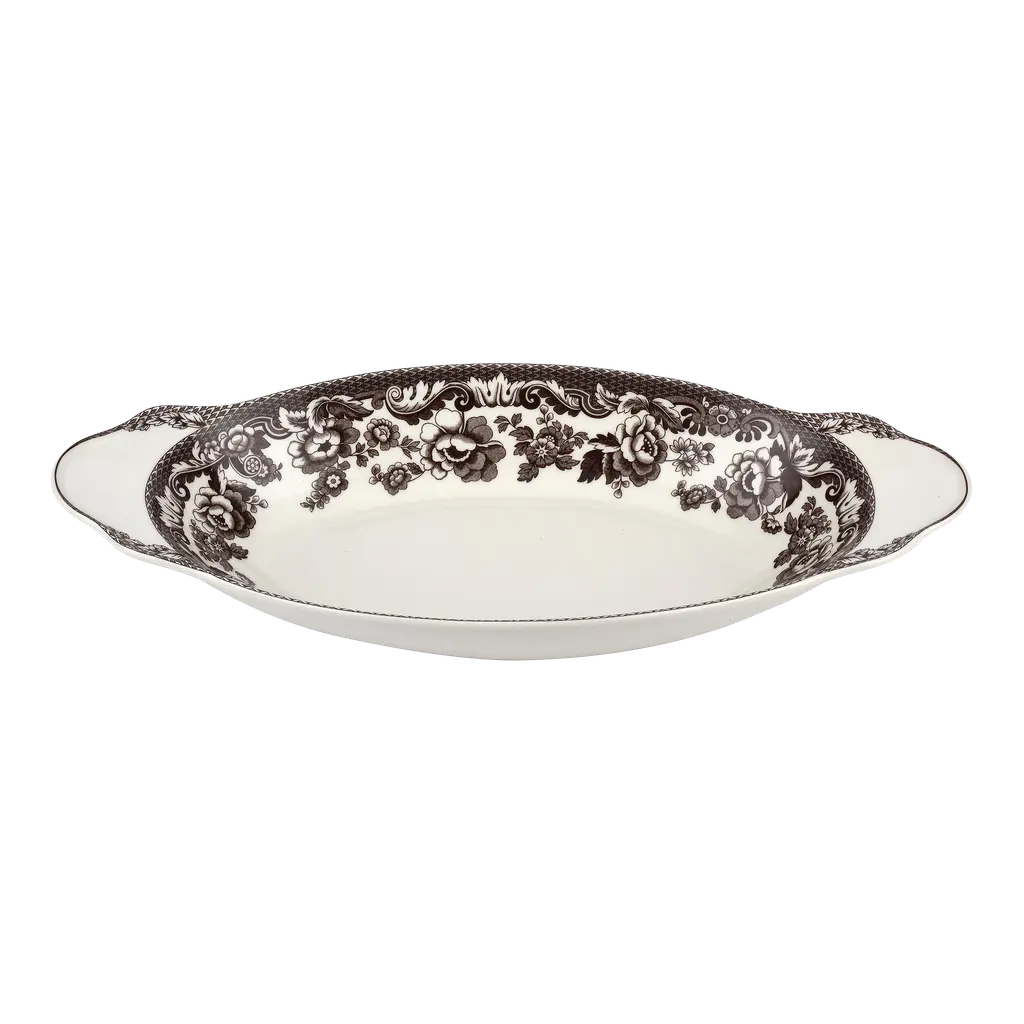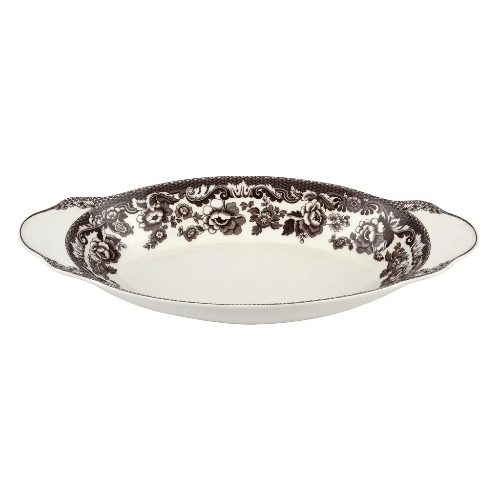 This Delamere bread tray by Spode features the rich brown British Flowers design border and is perfect for serving fresh bread at the dinner table. Care Instructions: Dishwasher Safe