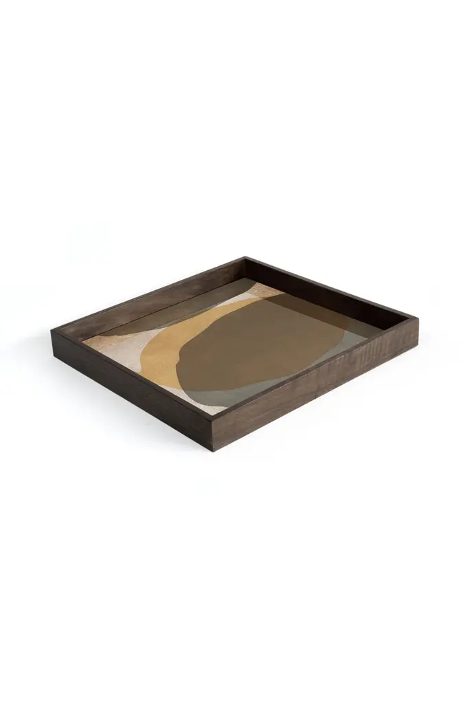 Add a touch of elegance and creativity to your space with the Ethnicraft Square Earth-Toned Glass. It artfully layers organic dots atop an aged surface, creating a sense of depth and allowing dynamic combinations to blossom. It feels bold yet light, thanks to the delicate inks and pigments. It features a hand-painted base with silk-screen printed glass and a wooden rim, blending artistry with utility. Use it to display small decor items like candles and small potted plants or as a stylish base for an arrangement of tableware.