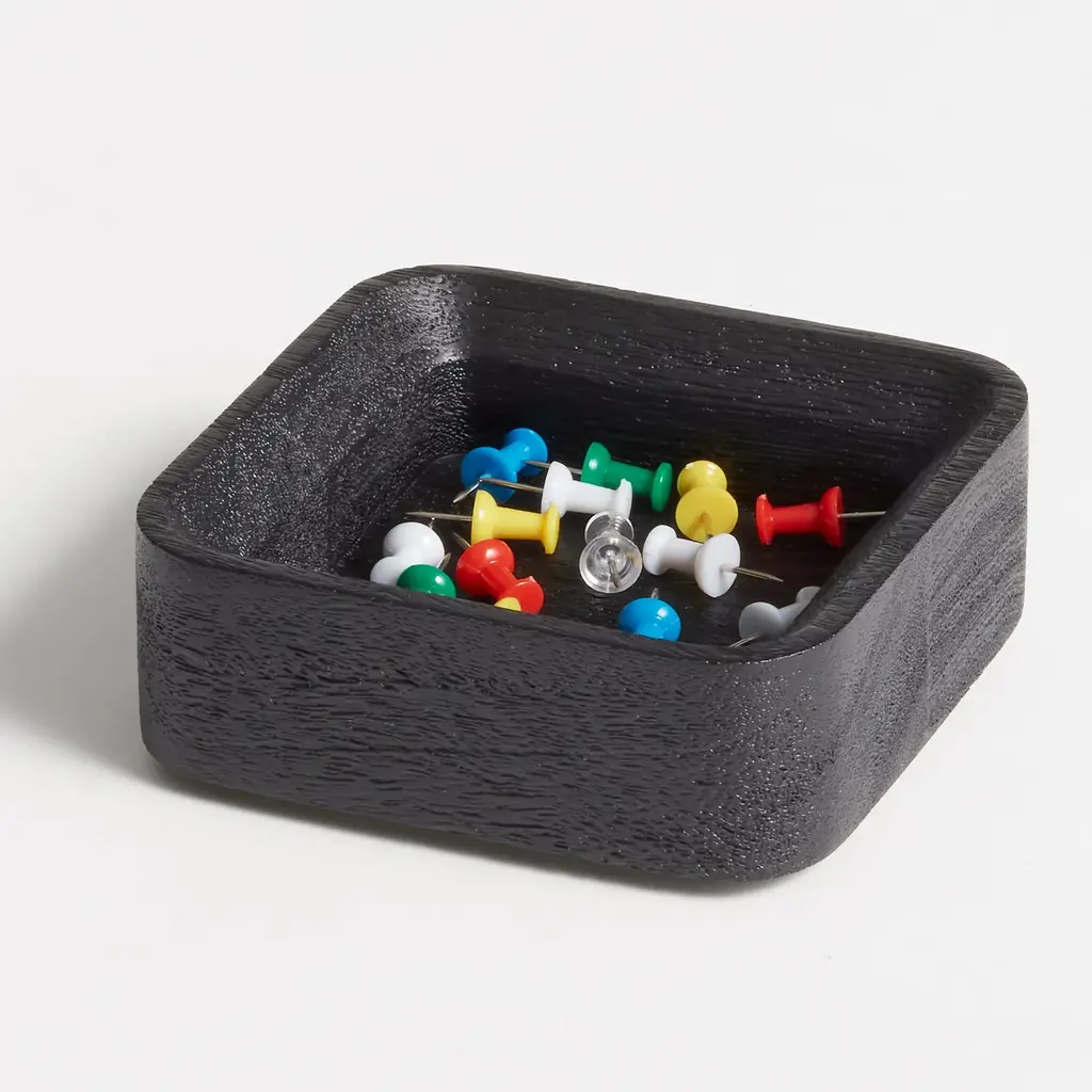 Maintain harmony in your office. Solid beveled wood stacks to pick up pens, paperclips and any number of workday miscellanea. Three shapes sold separately, but fit together in one tidy square to clean up without stealing precious workspace.