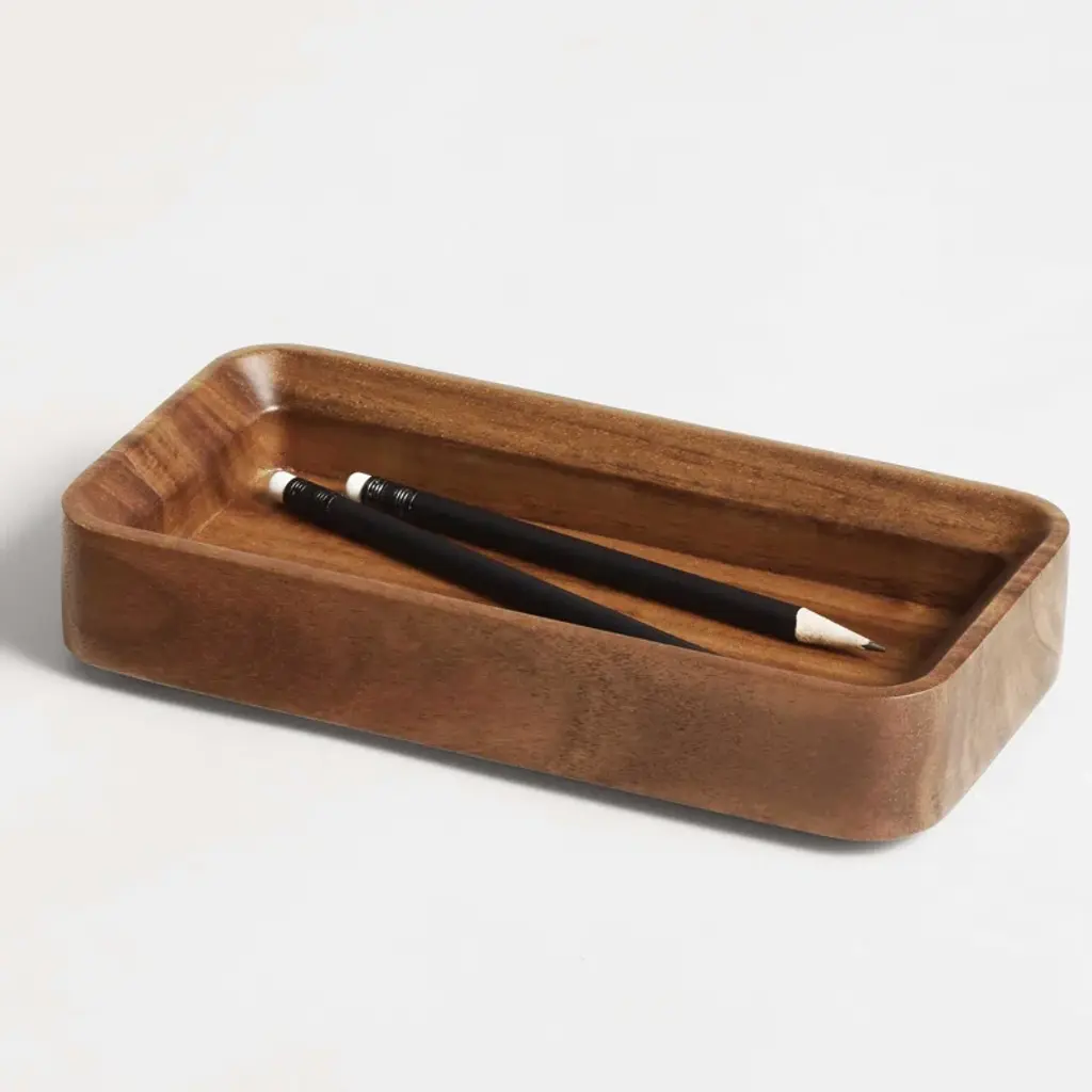 Maintain harmony in your office. Solid beveled wood stacks to pick up pens paperclips and any number of workday miscellanea. Three shapes are sold separately but fit together in one tidy square to clean up without stealing precious workspace. For additional productivity add our Square One pencil cup.