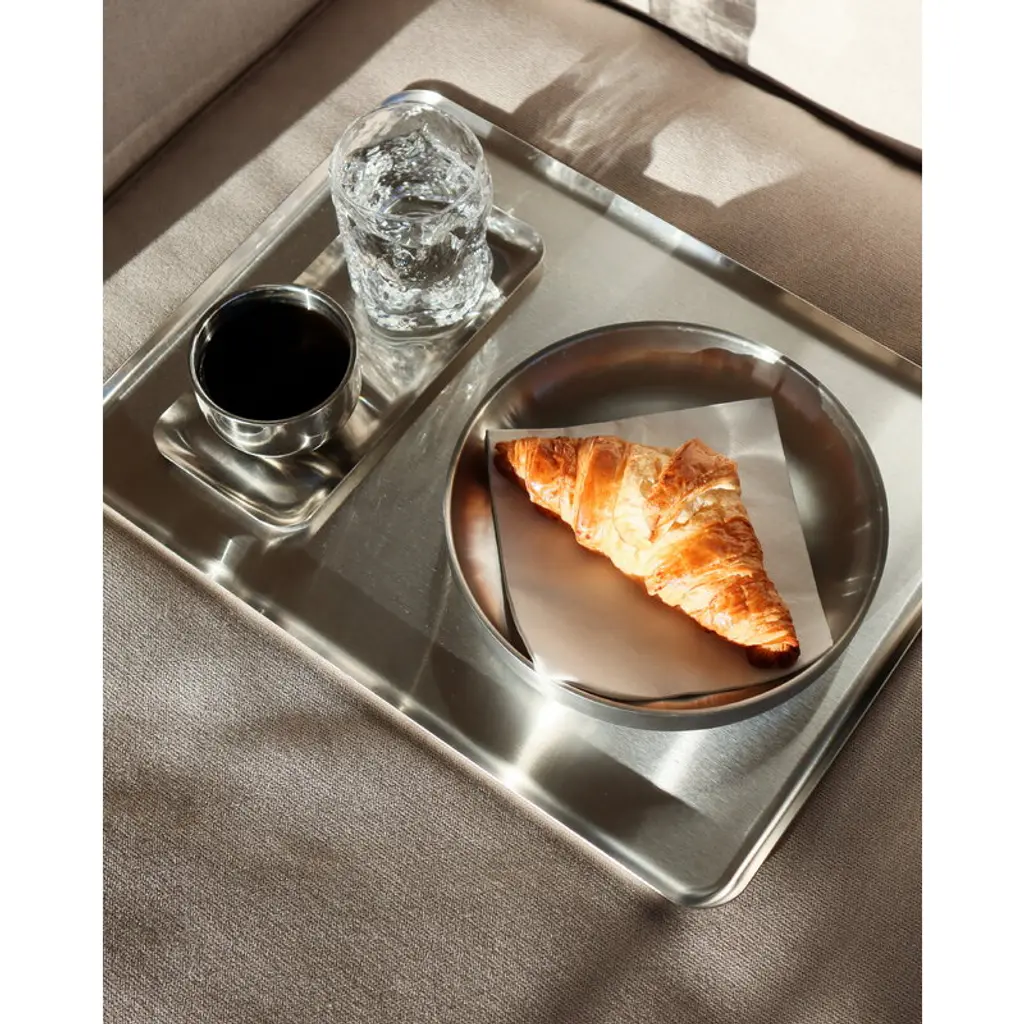Nichba's stainless steel tray is a versatile companion, perfectly suited for both kitchen and dining use. The sturdy rectangular metal tray works beautifully for serving cocktails to guests, enjoying breakfast in bed, carrying snacks to the sofa, or simply adding a refined touch to your table setting or display. Made from stainless steel, the polished finish lends a sophisticated shine to the tray's overall look, making it a striking accent wherever it’s placed. Between serving moments, the steel tray is stylish enough to keep on display in your kitchen.