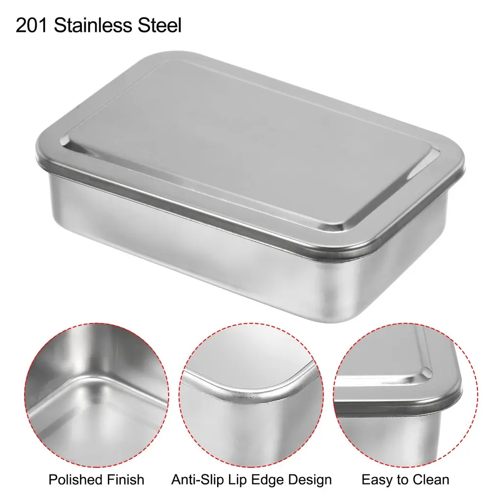 Stainless Steel Tray With Lid, 15x10cm Rectangular Lab Organizer Tool - Silver - Silver