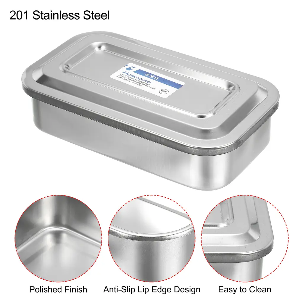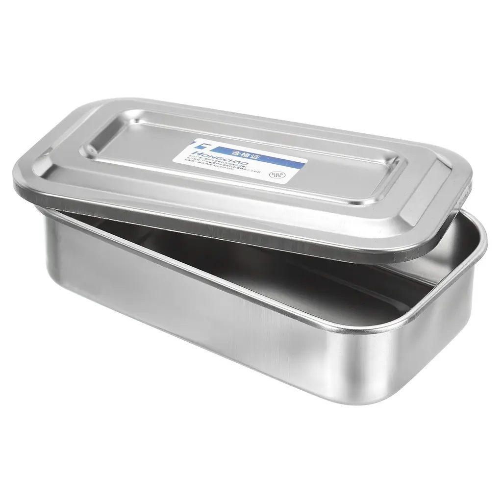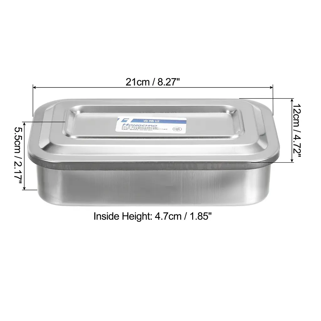 Stainless Steel Tray With Lid, 21x12cm Rectangular Lab Instrument Organizer Tool - Silver - Silver
