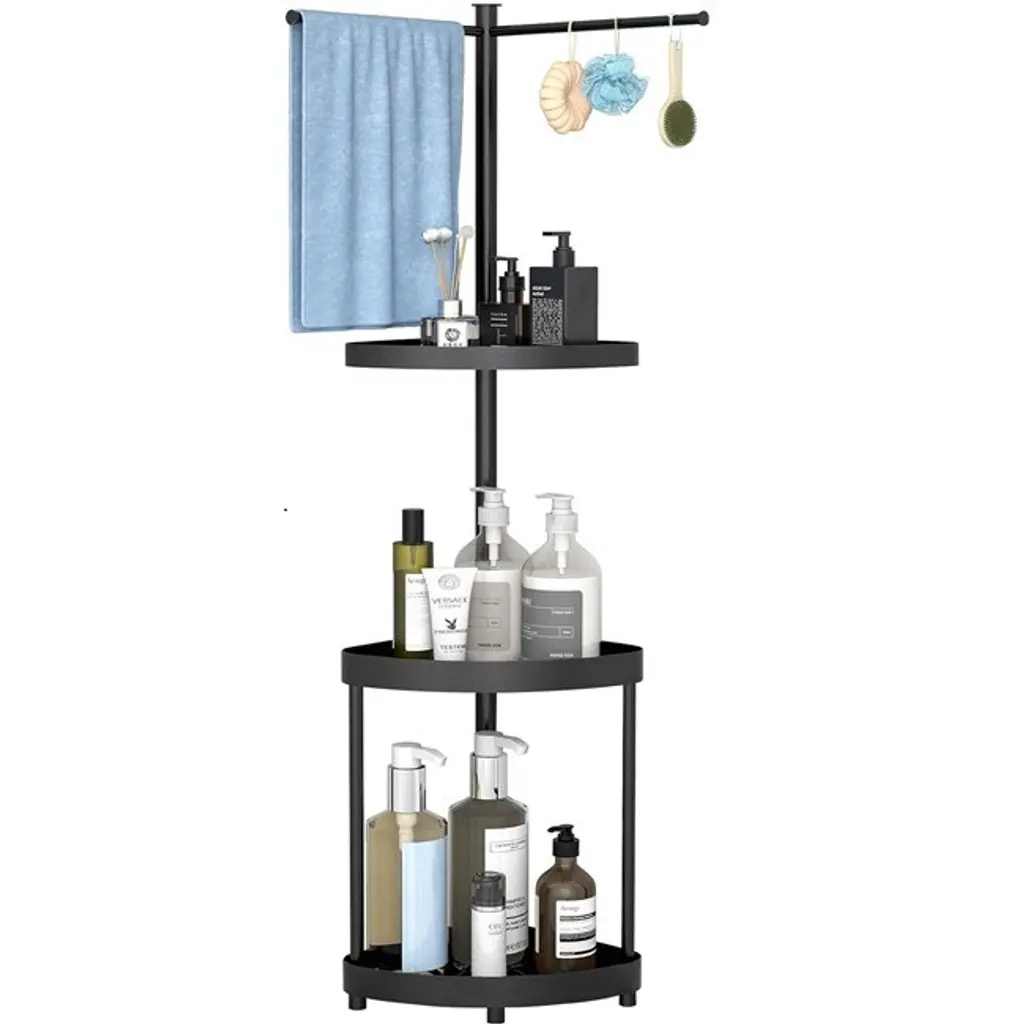 Standing Shower Tray - 3 Tier Corner Shower Tray With Towel Bar Bathroom Corner Shower Tray - 9.8 X 12.7 X 44.2 Inches - Black - 9.8 X 12.7 X 44.2 Inches