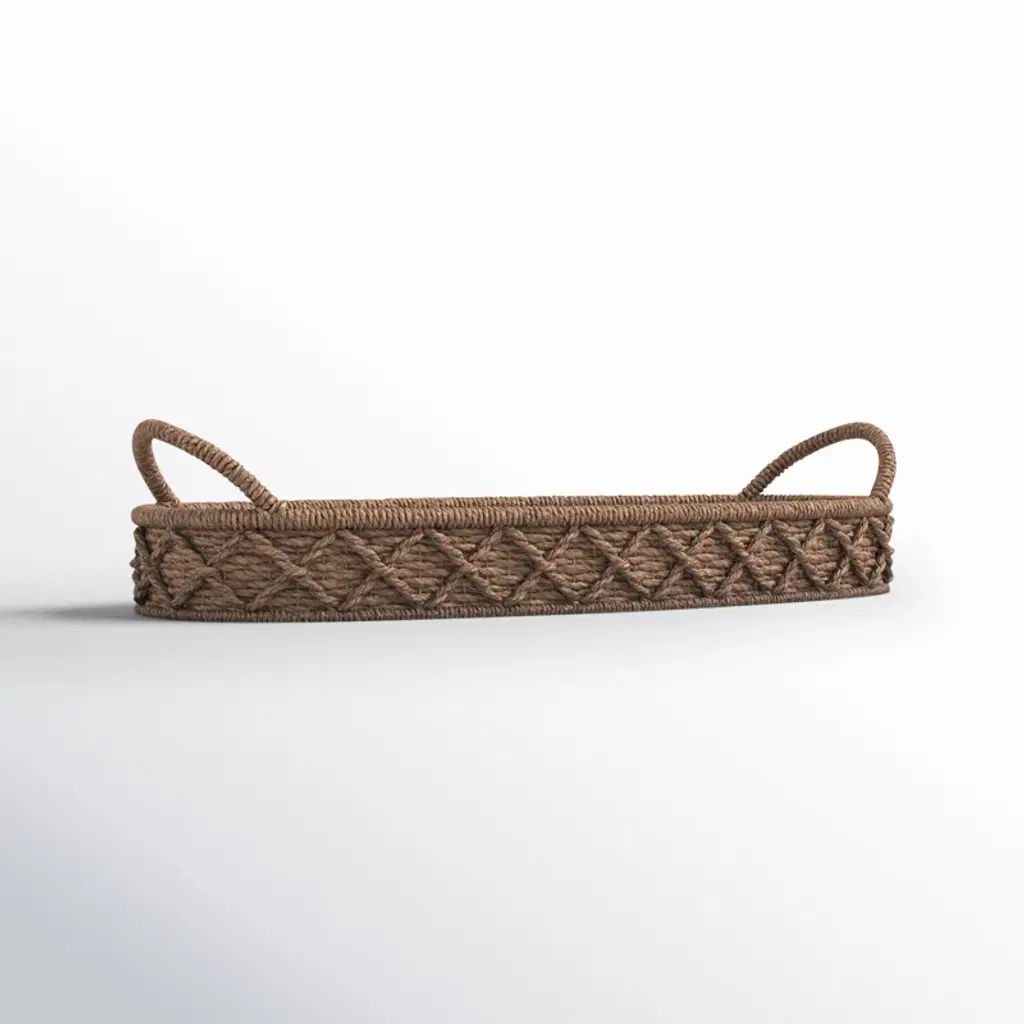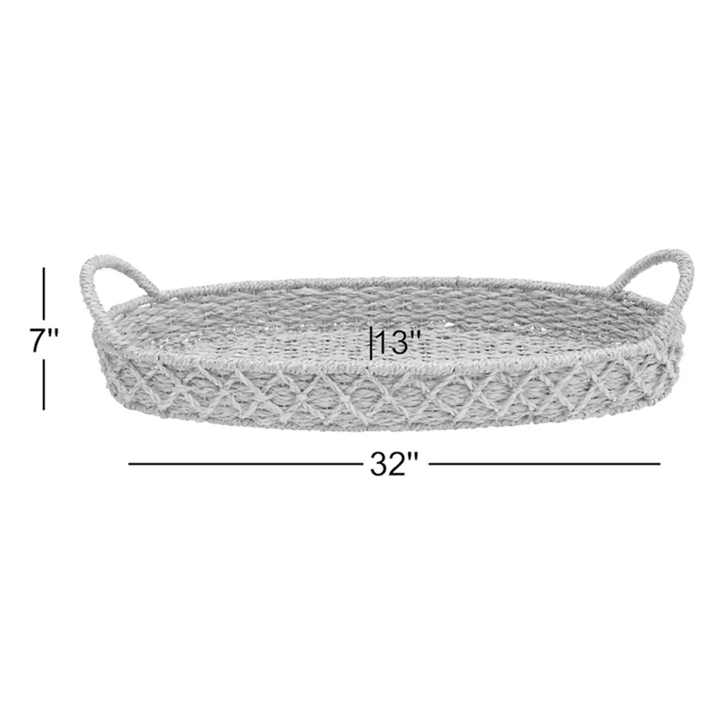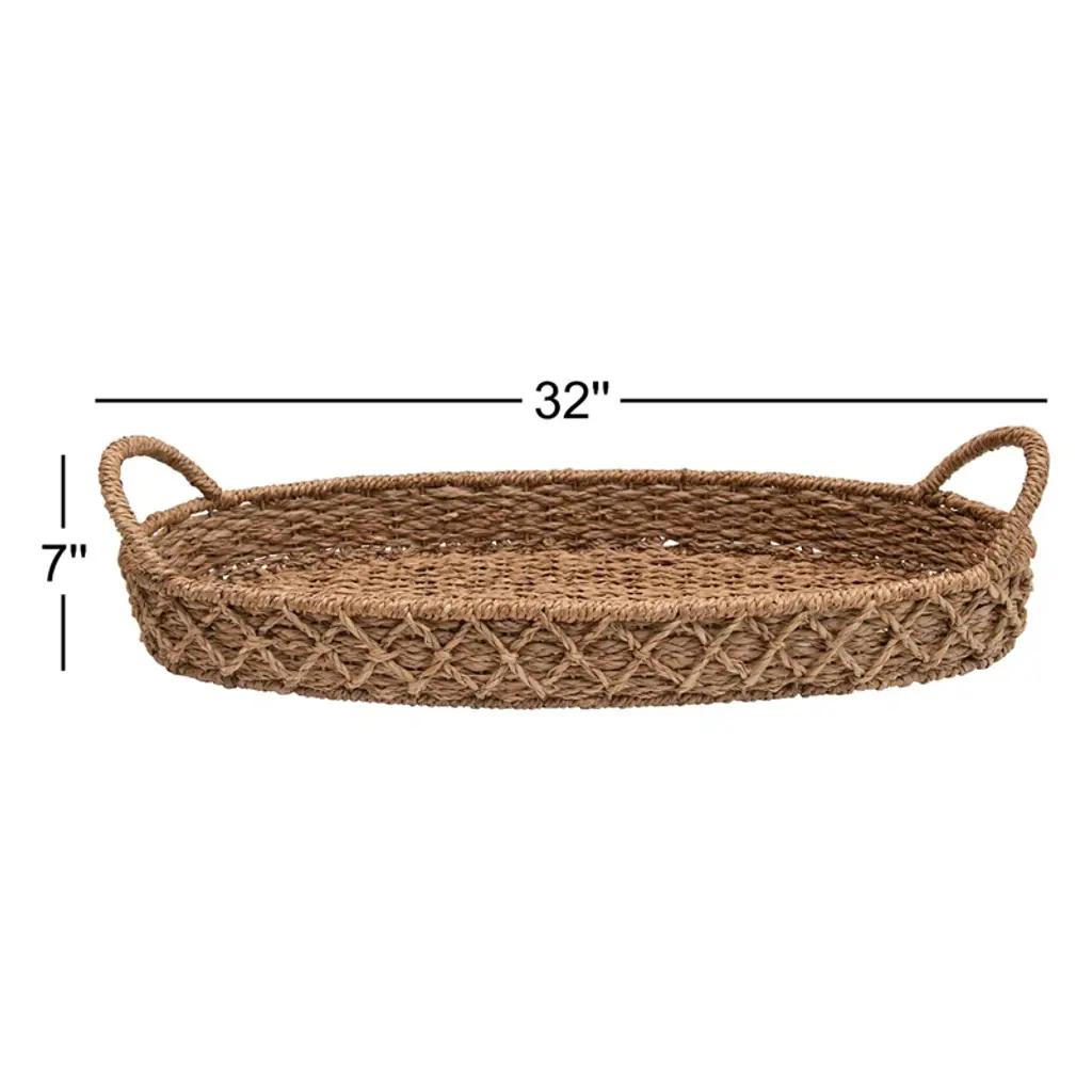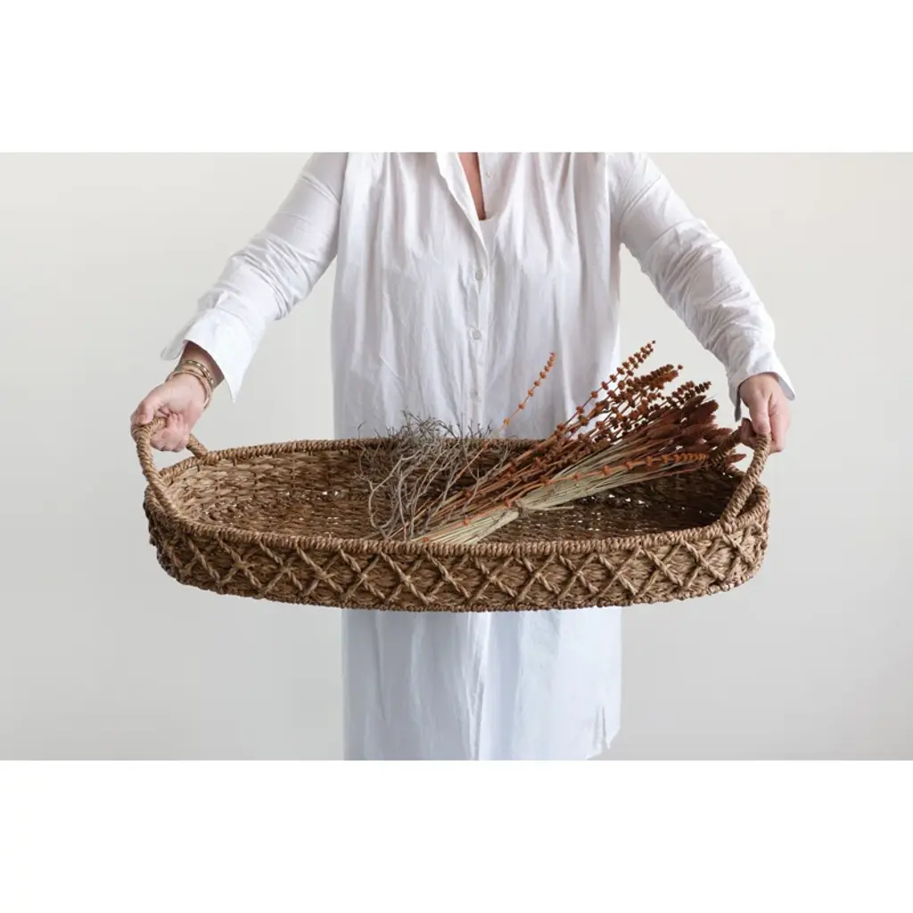 Make this seagrass tray a statement piece in the living room or bedroom of your home. Fill it with dried botanicals and a selection of books to display on the coffee table or oversized ottoman. In the bedroom, place in the middle of the bed and display a decorative "breakfast tray" setting with small plate, cup and saucer and small vase with a single flower inside.