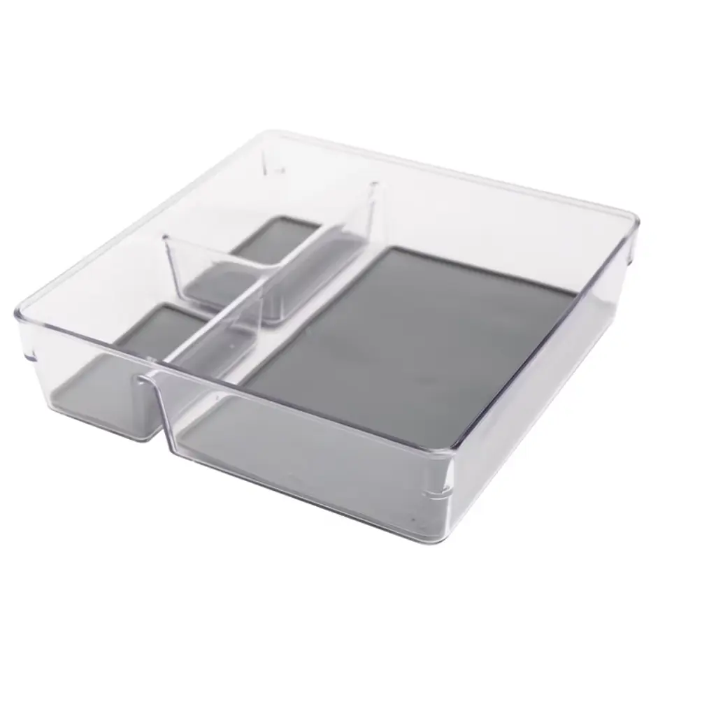 Say goodbye to drawer clutter and hello to a customized organizational system! Whether you are tidying up the kitchen junk drawer or organizing the bathroom vanity, Sterilite's Narrow Storage Trays are the perfect solution. These trays are available in 3 different sizes at quantities of 16 each. This 48-pack of Narrow Storage Trays is ideal for storing and organizing smaller items such as office supplies, craft items, nail polish, makeup, and more. All 3 sizes are modular and work well together to create a customized and versatile storage solution for any drawer in your home, whether it be the kitchen, bathroom, office, or craft room. Storage Trays are designed to fit in most drawers and they are also a perfect solution for desktop or countertop organization. The sturdy, banded rim adds a stylish touch to the trays, while the modern, clear design works well with any home décor. These trays feature polished sides and a textured bottom that are both easy to clean. The overall assembled dimensions of this item are 9.7 inches long, 3.5 inches wide, and 2.5 inches high. Experience clutter-free living with the 48-Pack of Narrow Storage Trays from Sterilite.