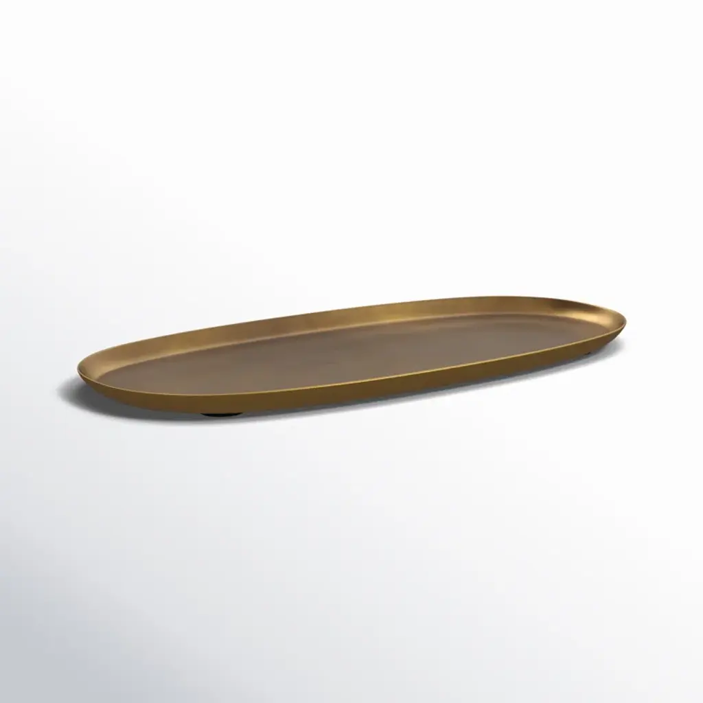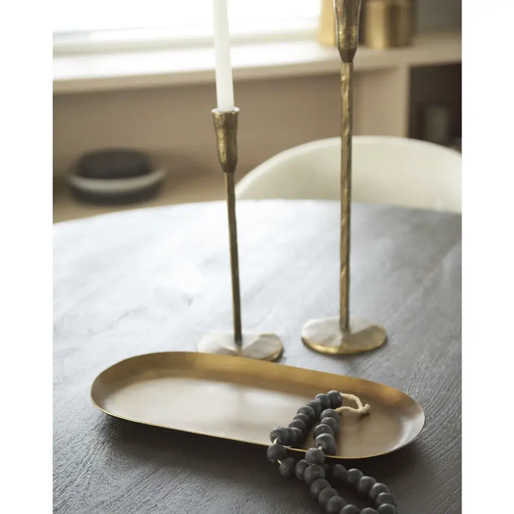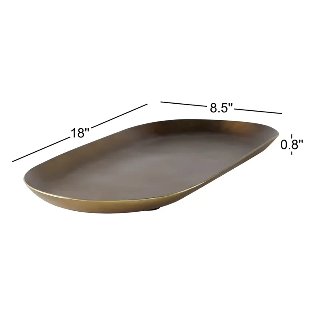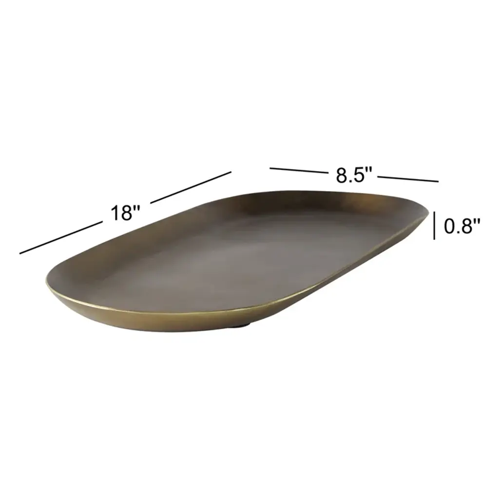 Like a slab of burnished gold, the Saryn candle tray is a stunning, contemporary accessory with a sleek design. The tray’s antiqued gold, aluminum base makes a beautiful tray; for displaying candles and home decor items.